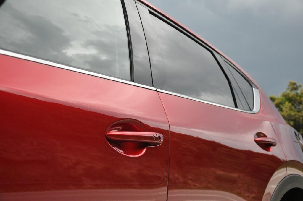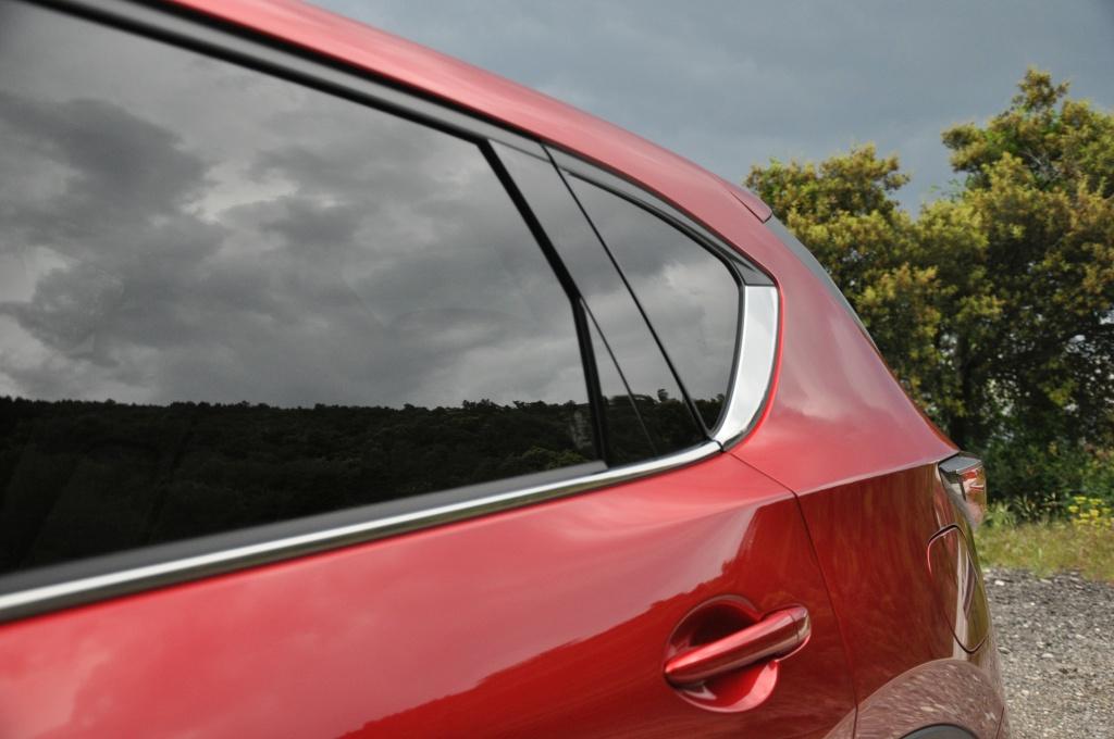 Teraz przyszła pora na drugą generację kompaktowego CX-5. Choć stylistyka jest kwestią gustu, to nie można autu wiele zarzucić. Wyciągnięta do przodu maska i wyrazisty grill, połączony z przymrużonymi oczami adaptacyjnych reflektorów LED-owych nadają nadwoziu drapieżnego wyglądu, a mimo wszystko nowa generacja ma o 6% niższy współczynnik oporu powietrza. Pozytywne wrażenia są podsycane nowym trójwarstwowym lakierem Soul Red Crystal, widocznym na zdjęciach.