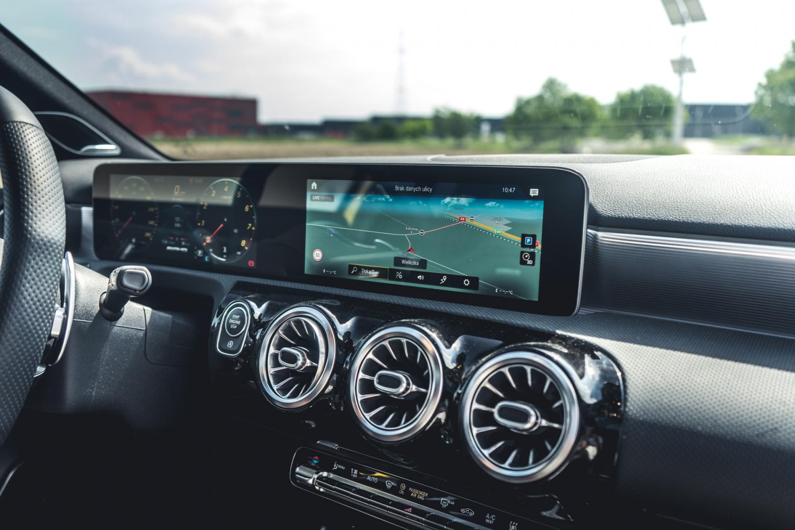 Wnętrze nowej Klasy A oczywiście już znamy. Dwa ekrany pod jedną taflą tworzywa lub szkła, minimalna liczba przycisków, system MBUX i rozbudowana funkcjonalność.