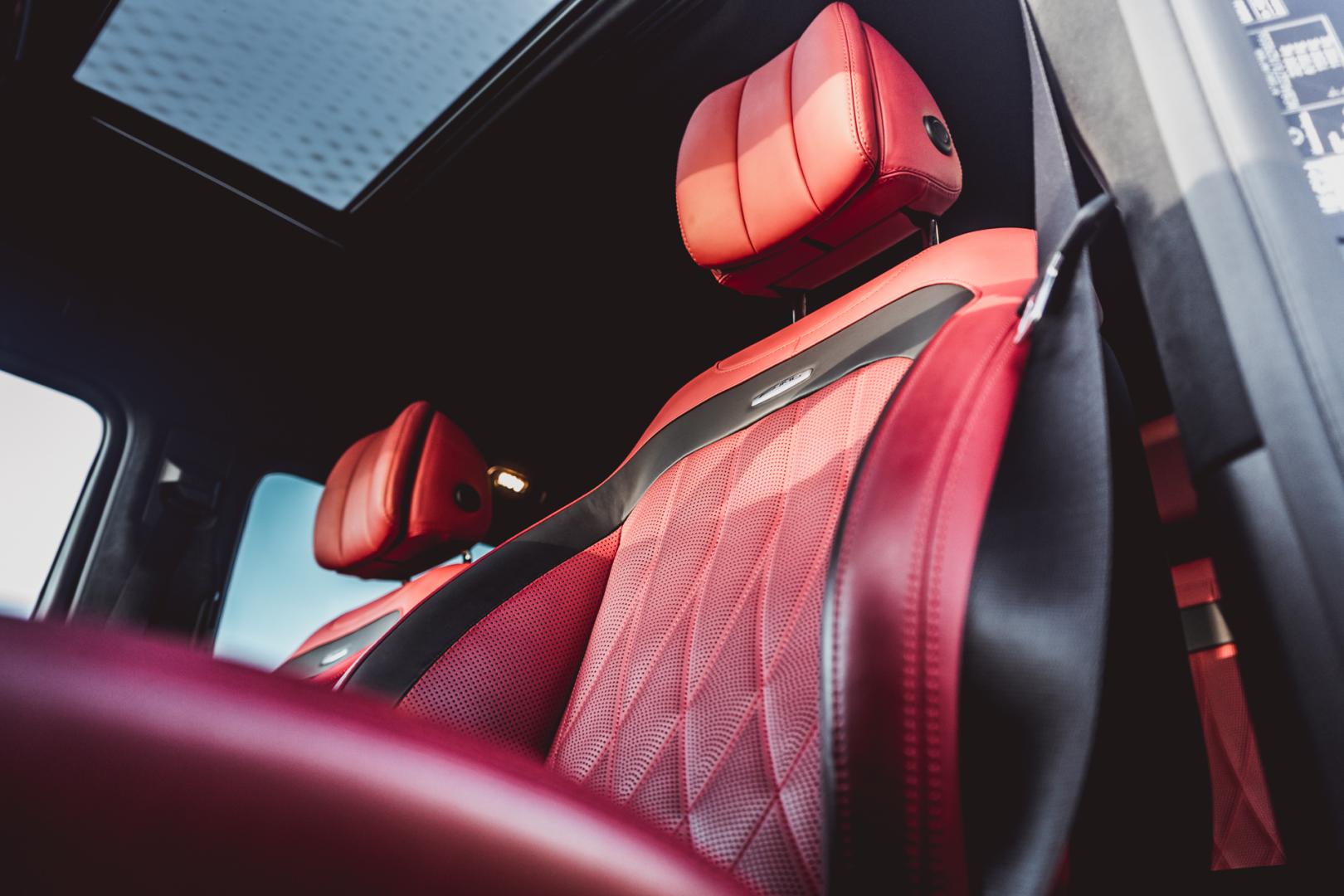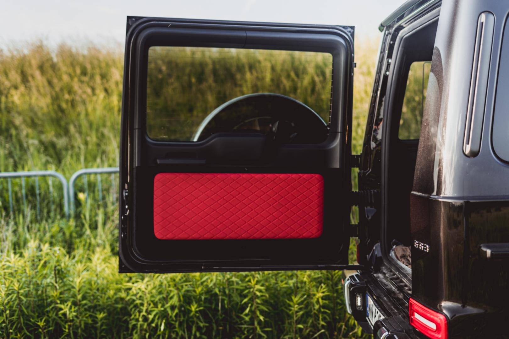 Testowa wersja Mercedesa Klasy G wygląda jak samochód hrabiego Drakuli. Czarny na zewnątrz, z czerwoną pikowaną skórą w środku. Wygląda to nieźle, ale też dość odważnie. Niemniej – możliwości konfiguracji jest mnóstwo, każdy skonfiguruje ten samochód tak, jak będzie mu się podobało.