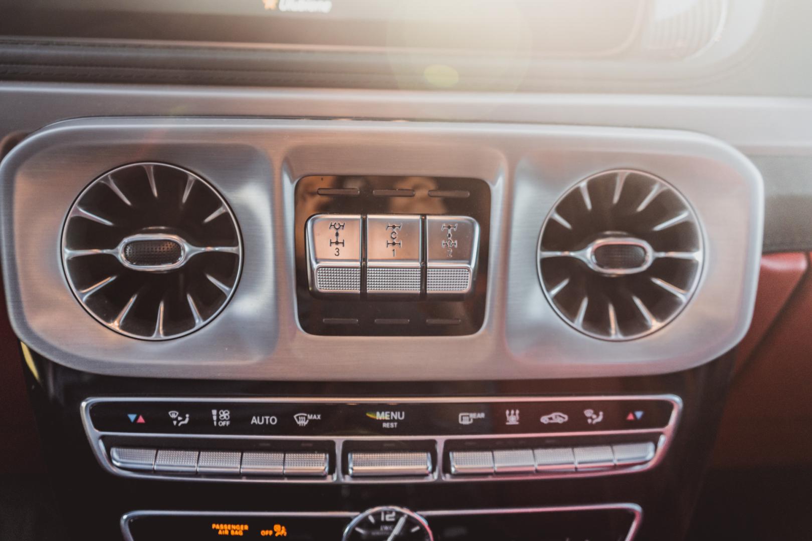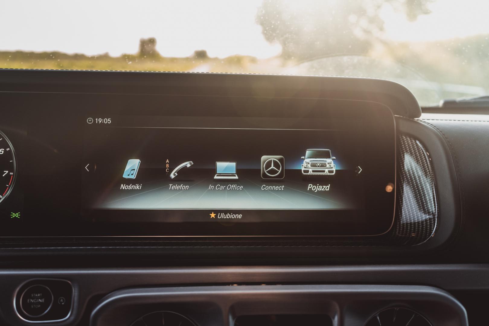 Nie wszyscy będą jednak zadowoleni z wyglądu wnętrza Mercedesa-AMG G63. Jedyny analogowy zegar to ten na dole deski rozdzielczej z prestiżowym logo IWC Schaffhausen. Do Klasy G przeniesiono koncepcję z Klasy S, z ekranem systemu Command Online i cyfrowymi zegarami pod jedną taflą szkła. Analogowych zegarów w AMG nie dostaniemy – a szkoda, bo w G500 są i wyglądają całkiem nieźle.