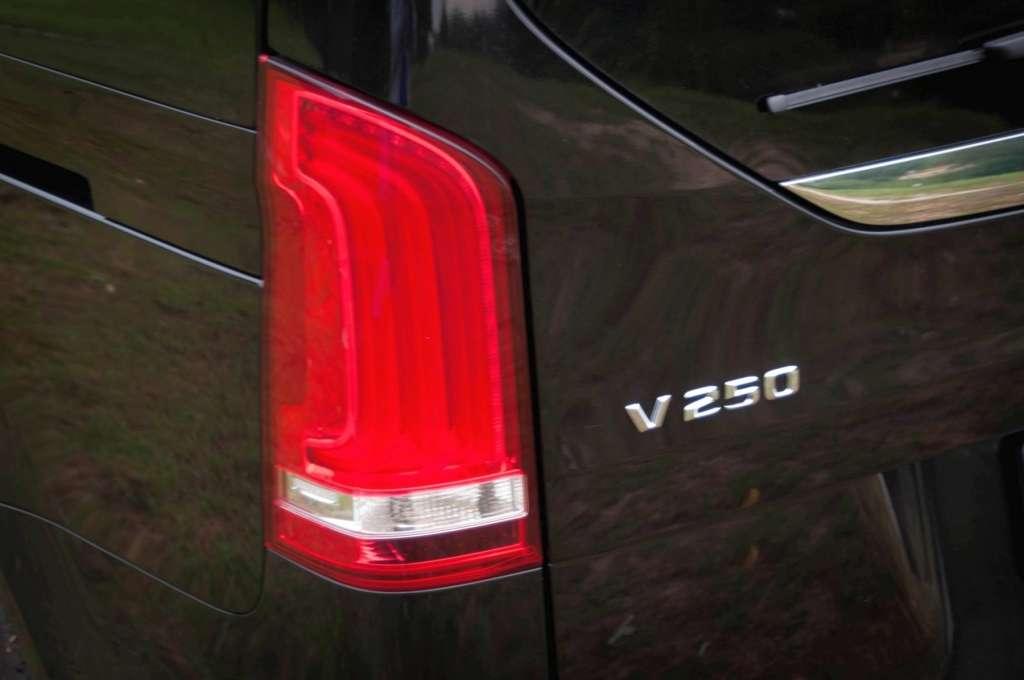 Zanim zajmiemy miejsce kierowcy warto przyjrzeć się klasie V z zewnątrz. A jest na co popatrzeć. Szczególnie z przodu auto wygląda reprezentacyjnie. Reflektory bezpośrednio nawiązujące do klasy S nadają mu odpowiedniego szyku. Zdecydowane przetłoczenia ciągnące się przez całą długość samochodu, potężny grill z gwiazdą wielkości talerza satelitarnego, V klasa budzi na drodze respekt. Testowanemu przez nas Mercedesowi klasy dodawał czarny lakier oraz przyciemniane szyby przedziału pasażerskiego i tyłu auta. Samochód osadzony jest na słusznego rozmiaru 19 calowych felgach aluminiowych, na rynku nie ma vana, który wyglądałby lepiej od V klasy.