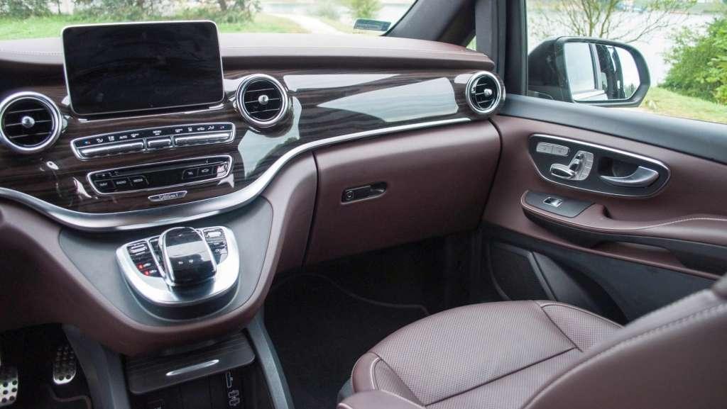 A jak nasz kierowca poczuje się na stanowisku pracy? Tu także nie mam zastrzeżeń. Wykończenie wnętrza jest znakomite. Skórzana tapicerka marron nappa to klasa sama w sobie. Przednie fotele są wentylowane w trzystopniowej skali. W chłodniejsze dni zamiast wentylacji możemy włączyć podgrzewanie. Przyjemna w dotyku, nie za duża kierownica i projekt deski rozdzielczej przypominająca wyglądem Mercedesa klasy C powodują, że w wysokim i długim (sporo ponad 5 metrów) aucie czujemy się niemal jak w osobówce. O tym, że siedzimy w vanie przypomina wysoka pozycja za kierownicą. Widoczność z wnętrza? Znakomita. Harmonię linii deski rozdzielczej burzy ekran systemu multimedialnego. Wygląda on zupełnie jak położony poziomo i przyczepiony na siłę tablet. Do projektu wnętrza mam jeszcze jedno zastrzeżenie. O ile użyte do wykończenia klasy V materiały są bardzo dobrej jakości o tyle ciągnący się w poprzek panelu centralnego kawał udającego drewno plastiku budzi mój niesmak. Płacąc za klasę V w wersji Edition 1 ponad 300 tysięcy złotych oczekiwalibyśmy czegoś bardziej wyrafinowanego. Myślę, że klient, który wykłada na auto równowartość dwupokojowego mieszkania w centrum Krakowa. Klient, którego producent auta sadza na delikatnej, wentylowanej skórze ma wyższe oczekiwania niż pół metra kwadratowego plastiku a’la orzech.