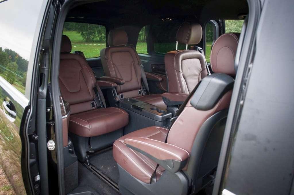 Pora do naszego Mercedesa zaprosić prezesa. Elektrycznie otwieramy przesuwane drzwi boczne, naszym oczom ukazują się cztery fotele sprawiające wrażenie pełnego komfortu. I tak jest. Powiedzieć, że z tyłu klasy V jest przestronnie to banał. Tu każdy pasażer znajdzie dla siebie więcej miejsca niż potrzebuje. Fotele możemy dowolnie przesuwać, konfigurować wnętrze zależnie od potrzeb. Do tego trzystrefowa klimatyzacja, rozkładany stolik przydatny, kiedy chcemy popracować na komputerze. Wszystko jest zaprojektowane dokładnie tak jak powinno w aucie, którego głównym zadaniem ma być wożenie wymagających pasażerów na długich dystansach. Czy jest tu aż tak dobrze? W teorii tak, do póki nie rozpocznie się jazda. Ale o tym za chwilę.