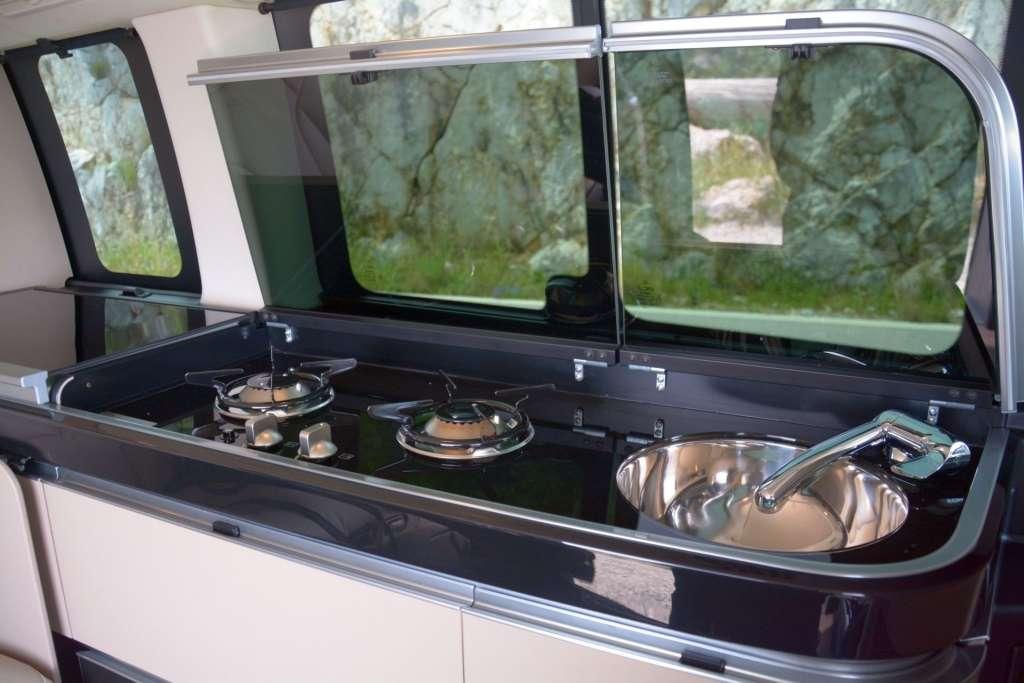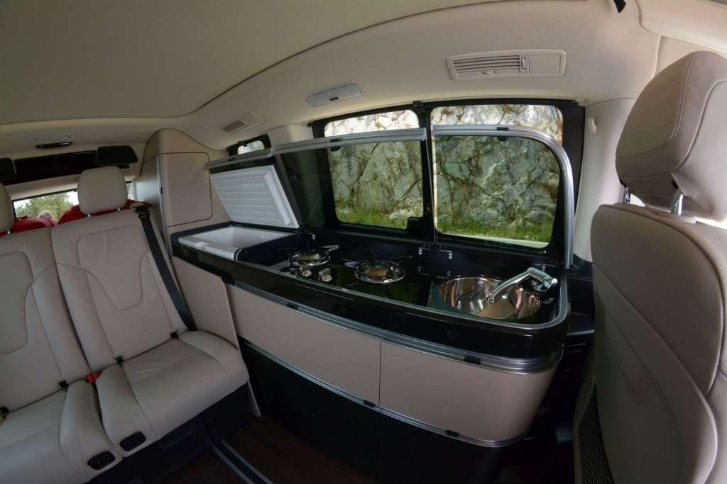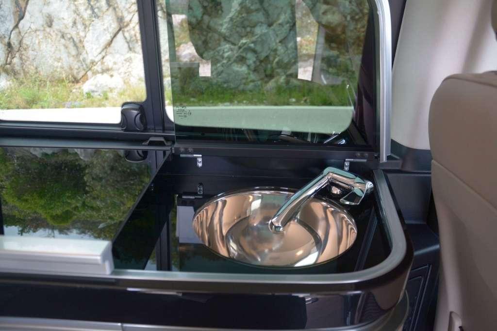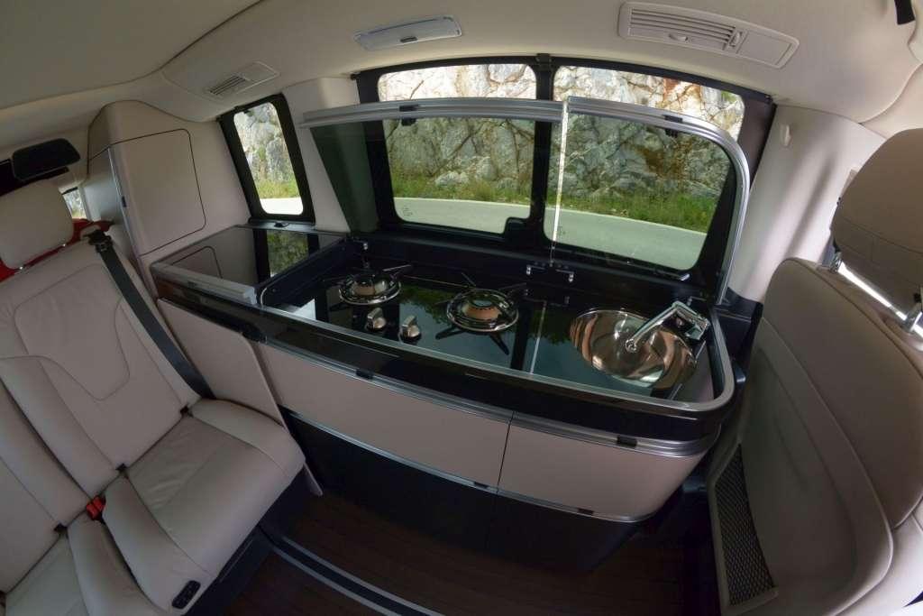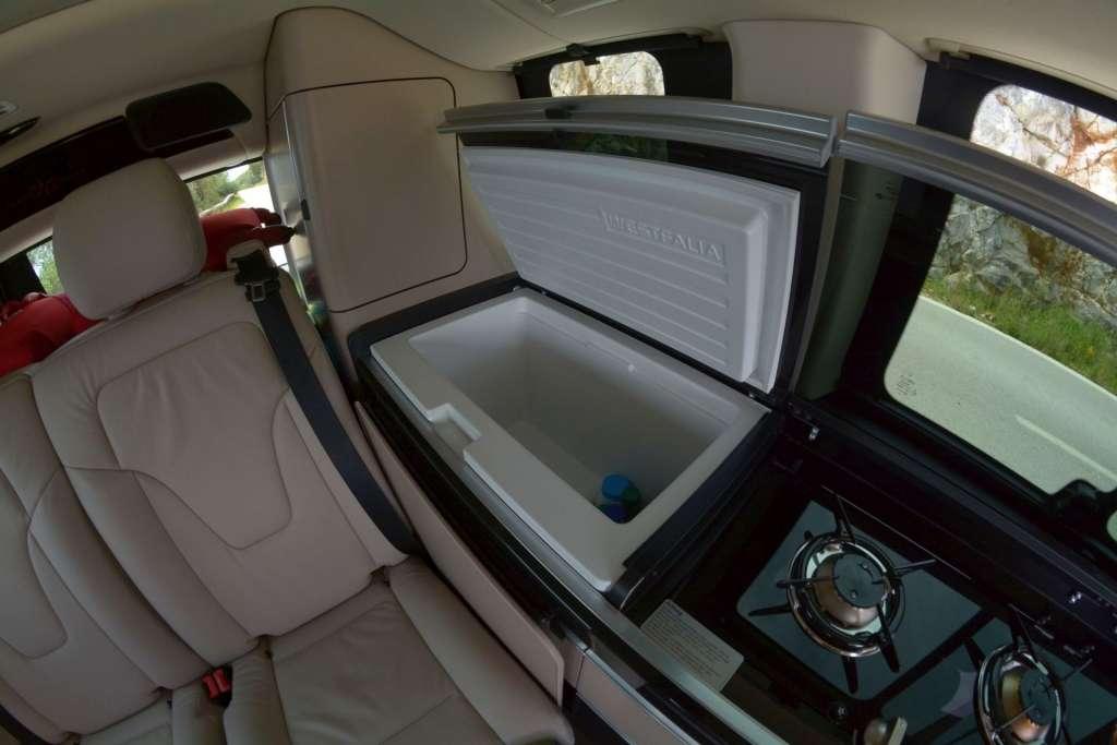 A w środku poczujemy klimat wakacji, urlopu, beztroski… Właśnie to zapewnia kamper, a Marco Polo jest kamperem z krwi i kości, choć wymiarami nieco odstaje od amerykańskich klasyków. Obie wersje oferują co innego, więc zacznijmy od tej droższej. Po pierwsze podłoga – drewno jak z luksuowego jachtu. Poza tym liczne schowki, szafki, wygodne, pneumatyczne i ustawne fotele i co najważniejsze – ciąg kuchenny ze zlewem, lodówką i kuchenką. To sprawia, że praktycznie w każdej chwili można sobie coś ugotować, zagotować wodę na herbatę lub napić się chłodnego napoju po długiej i wyczerpującej wędrówce np. po górach. To naprawdę robi wrażenie i daje nam poczucie niezależności. Nie musimy szukać dobrej restauracji czy baru, wystarczy wrócić do auta i samodzielnie zrobić sobie coś dobrego.