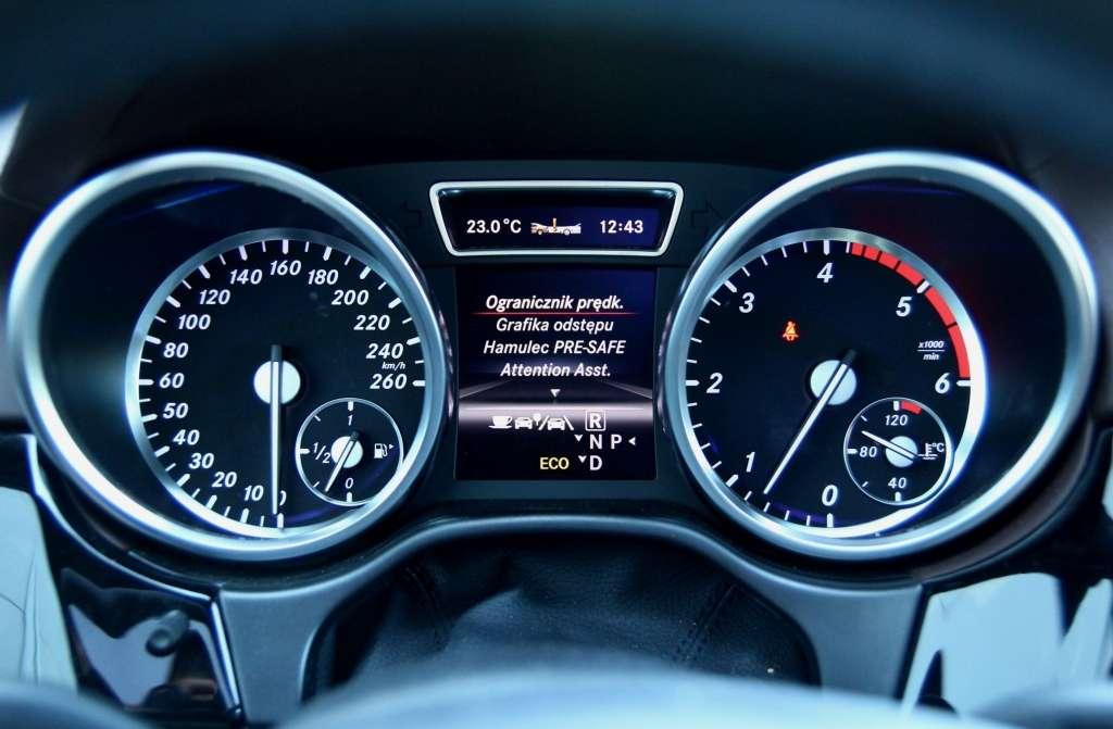 Wysoka pozycja za kierownicą, świetnie wyciszone oraz odizolowane od wibracji wnętrze, jak również duży zapas mocy w wersji 350 CDI ograniczają poczucie prędkości. Bez względu na to, czy ML-em podróżujemy 40, 80 czy 140 km/h, w kabinie panuje niezmącony spokój. Oferowane za dopłatą, pneumatyczne zawieszenie Airmatic w trybie Auto bardzo skutecznie tłumi nierówności, przekazując do wnętrza jedynie informacje o krótkich, niewielkich wybojach. System Adaptive Damping analizuje stan nawierzchni oraz styl jazdy, dostosowując do nich charakterystykę pracy elementów zawieszenia. Najbardziej wymagający mogą zdecydować się na opcjonalny pakiet aktywnych stabilizatorów Active Curve, który minimalizuje przechyły nadwozia podczas dynamicznego pokonywania zakrętów.