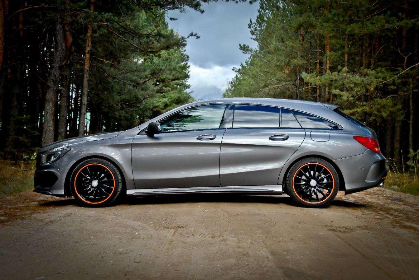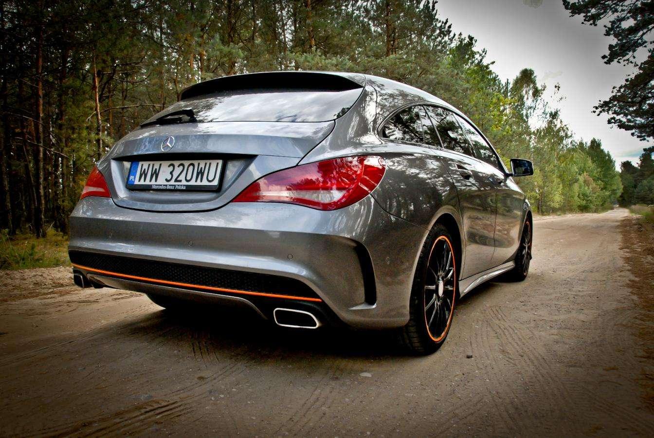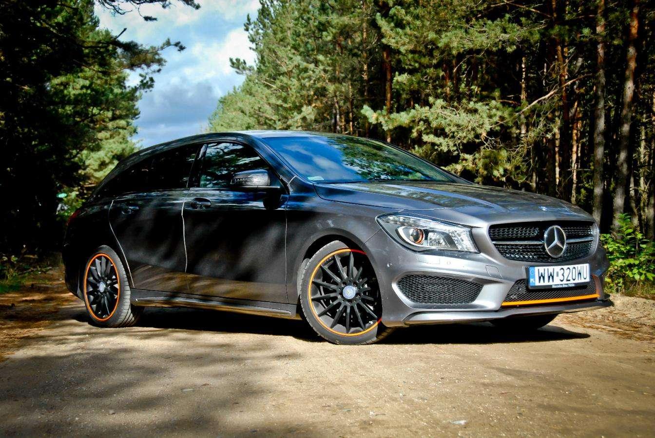 Czarne koła, pomarańczowe paski i płynnie narysowane nadwozie typu Shooting Brake nadają autu niepowtarzalnego stylu. Na pierwszy rzut oka wygląda jak najmocniejsza wersja CLA 45 AMG, ale to tylko złudzenie.