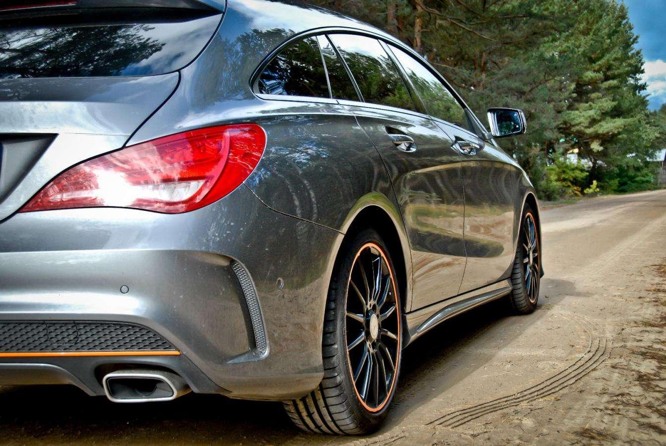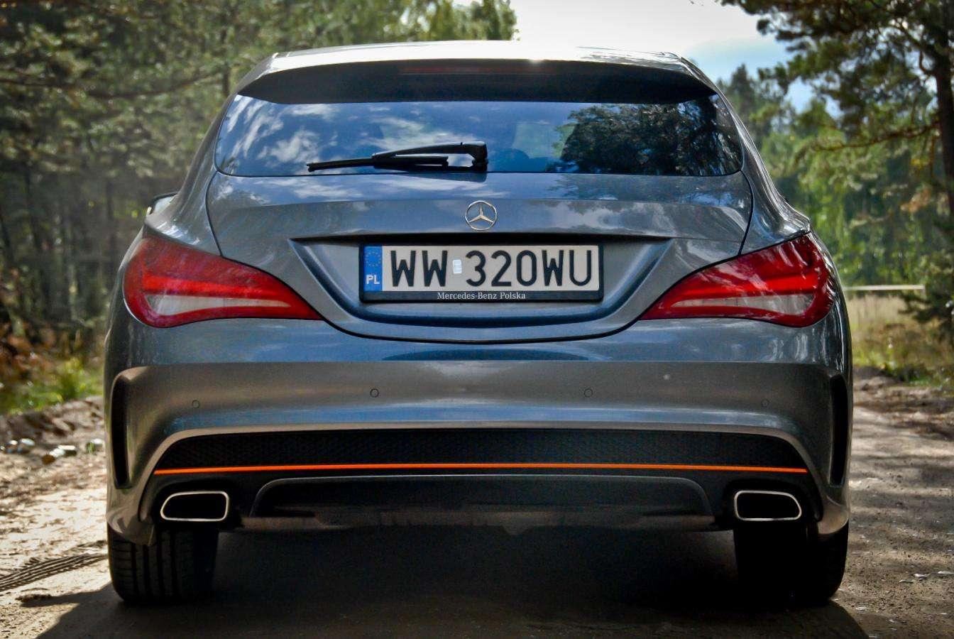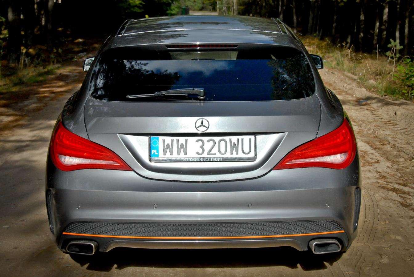 Czarne koła, pomarańczowe paski i płynnie narysowane nadwozie typu Shooting Brake nadają autu niepowtarzalnego stylu. Na pierwszy rzut oka wygląda jak najmocniejsza wersja CLA 45 AMG, ale to tylko złudzenie.