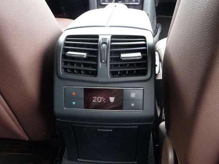 Najniższa część środkowej konsoli jest przeznaczona do regulacji temperatury, włączania ogrzewania siedzeń oraz ich wentylacji a także regulacji nawiewu. Tu widzimy standardowe rozwiązania, a moją uwagę zwróciły tylko bardzo wygodne dźwigienki, które wychylając w górę lub w dół zwiększają lub zmniejszają poziom danej funkcji. Trochę może denerwować wykonane na wysoki połysk tło, które odbija wszystko niczym ciemne lustro. Sama klimatyzacja jest 3 – strefowa i nosi nazwę Thermotronic. Rzeczywiście podczas jazdy przy wysokiej temperaturze, w parze z wentylacją foteli, osiągnięty został bardzo dobry efekt – kierowca nie odczuwa zmęczenia upałem.