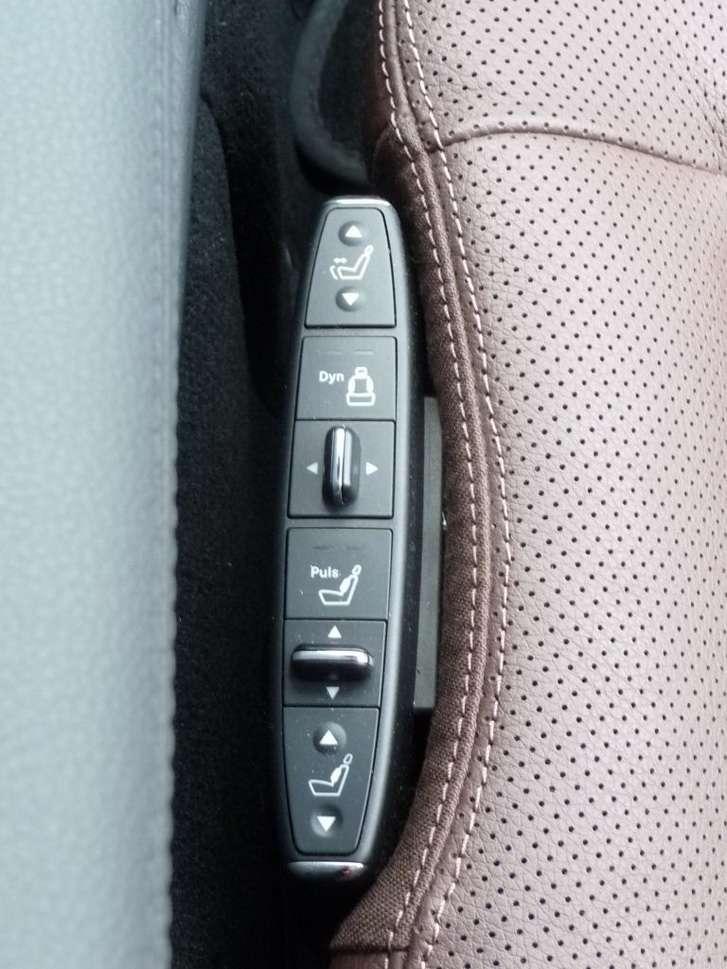 Nieco zdziwiłem się, że zajmując miejsce na tylnych siedzeniach pozostawała niewielka przestrzeń między kolanami a oparciami przednich foteli (oczywiście stosownie do klasy tego samochodu). Wynika to stąd, że oparcia te są bardzo grube, ponieważ zawierają wszystkie mechanizmy podnoszące wygodę siedzących z przodu. Pasażerowie z tyłu mogą zaciągnąć ręcznie boczne rolety szyb. W przypadku szyby tylnej robi się to elektrycznie. W testowanym egzemplarzu mieliśmy fotele konturowe. Pod tą nazwą kryje się precyzyjne dostosowanie fotela do wymiarów kierowcy i pasażera z przodu. Umieszczony z boku panel pozwala wyregulować, oprócz standardowych parametrów, wysokość podparcia ud, poziom i wysokość podparcia lędźwiowego oraz szerokość fotela. Ściślej mówiąc zakres trzymania po bokach. I ta ostatnia funkcja zrobiła na mnie największe wrażenie. Po dokładnym ustawieniu, zrezygnowałem nawet z możliwości dodatkowego wybrzuszania się boków oparcia na zakrętach. Wygląda to tak, że skręcając w prawo, czujemy naprężającą się lewą część oparcia i odwrotnie. Po dobrym ustawieniu trzymania bocznego, ta funkcja jest zupełnie niepotrzebna. Producent oferuje nam również regulowany masaż w oparciu, co mnie osobiście nie przypadło do gustu, oraz wentylowanie siedzeń. I ta druga możliwość zrobiła na mnie duże wrażenie. Jadąc podczas upału nie miałem uczucia, że koszula klei mi się do pleców. Dodam tylko, że mamy do dyspozycji 3 poziomy natężenia tego „wiatru w plecy". Na dłuższej trasie dobrze jest zacząć od pierwszego i później stopniować kolejne w miarę upływu czasu. Efekt naprawdę bardzo przyjemny. Oczywiście wygodnej pozycji za kierownicą towarzyszy szeroki podłokietnik ze zintegrowanym schowkiem albo raczej cała konsola wykonana w środku przedniej części pojazdu. Do takich wygód, jak zapamiętywanie ustawień fotela, kierownicy i lusterka już się chyba w autach tej klasy przyzwyczailiśmy. Po wyłączeniu silnika kierownica odsuwa się do góry ułatwiając wysiadanie i późniejsze wsiadanie. Możemy także ustawić i zapamiętać ustawienie prawego lusterka zewnętrznego przy włączonym wstecznym biegu.