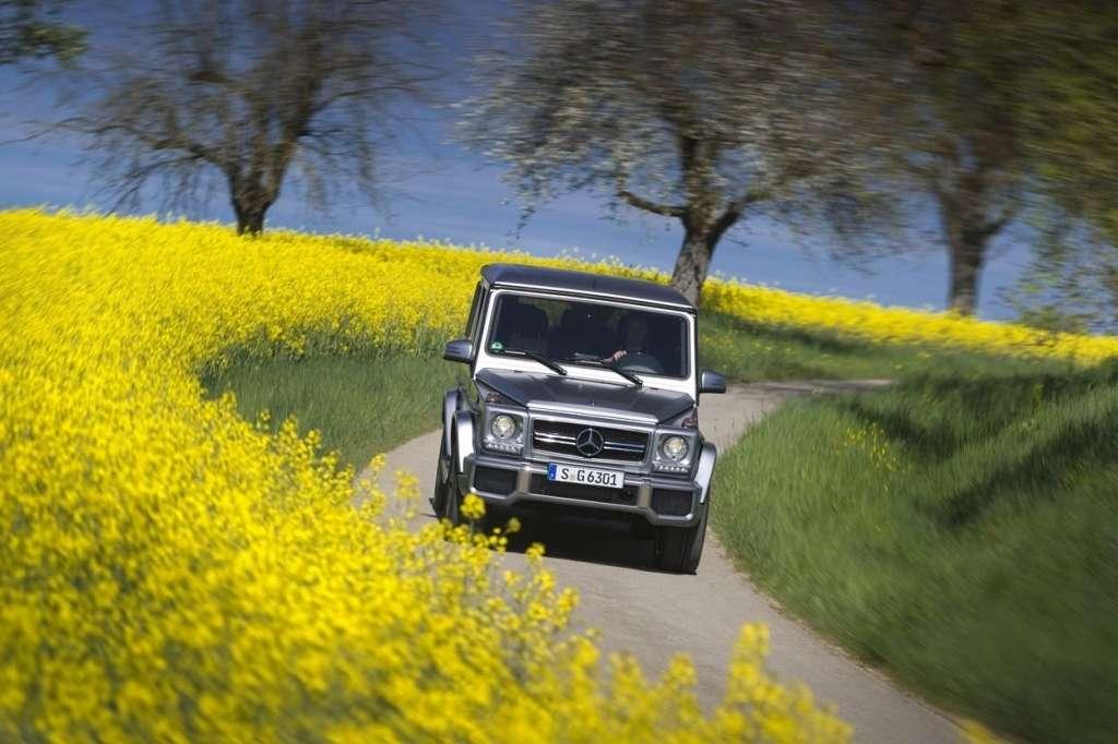 O ile facelifting wersji bez znaczka sportowej dywizji Mercedesa skupiał się jedynie na drobnostkach, o tyle w wersjach AMG zmiany dotyczyły również silnika. Oczywiście, podobnie jak w słabszych wariantach, dodano światła do jazdy dziennej wykonane w technologii LED. Poza tym przemodelowano nieco grill, zderzaki i obudowy lusterek, jednak najważniejsze jest to, że do historii przeszedł właśnie model G55 AMG. Na jego miejsce wprowadzono 544-konnego Mercedesa G63 AMG oraz 612-konnego potwora oznaczonego G65 AMG. Dotychczas najmocniejsza „Gelenda” produkowała 507 KM. Dodatkową moc uzyskano dzięki zastosowaniu podwójnego doładowania, w miejsce pojedynczego kompresora, jakim dysponował G55 z ostatnich lat produkcji.