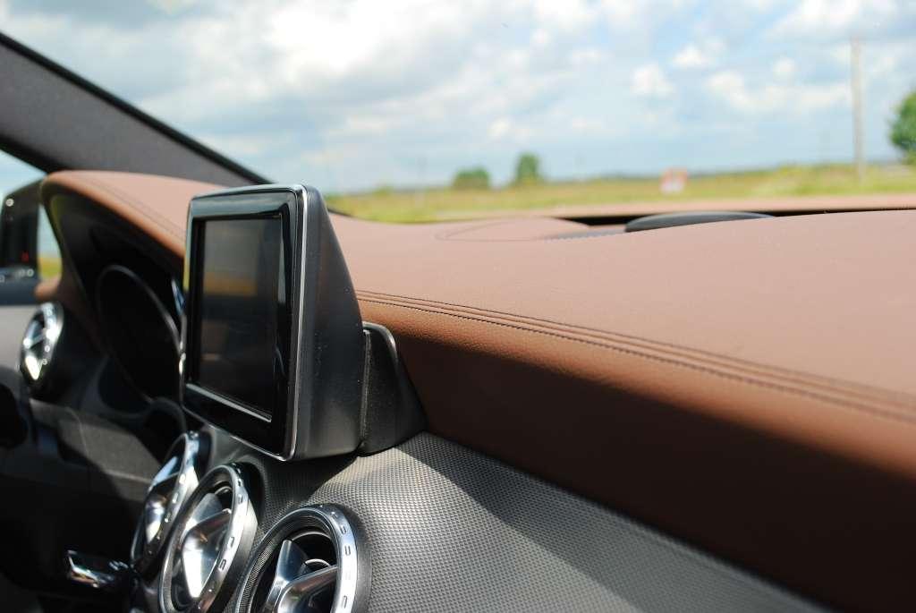 Mercedesy słyną z dobrych materiałów wykończeniowych i wysokiej precyzji montażu. GLA trzyma poziom. Tworzywa w dolnej części kokpitu są twarde, ale za sprawą odpowiednio dobranej kolorystyki i faktury wyglądają dobrze. Każdy klient może dopasować wygląd kabiny do własnych upodobań. W rozbudowanym katalogu znajdziemy kilka odmian paneli ozdobnych z aluminium, karbonu i drewna.