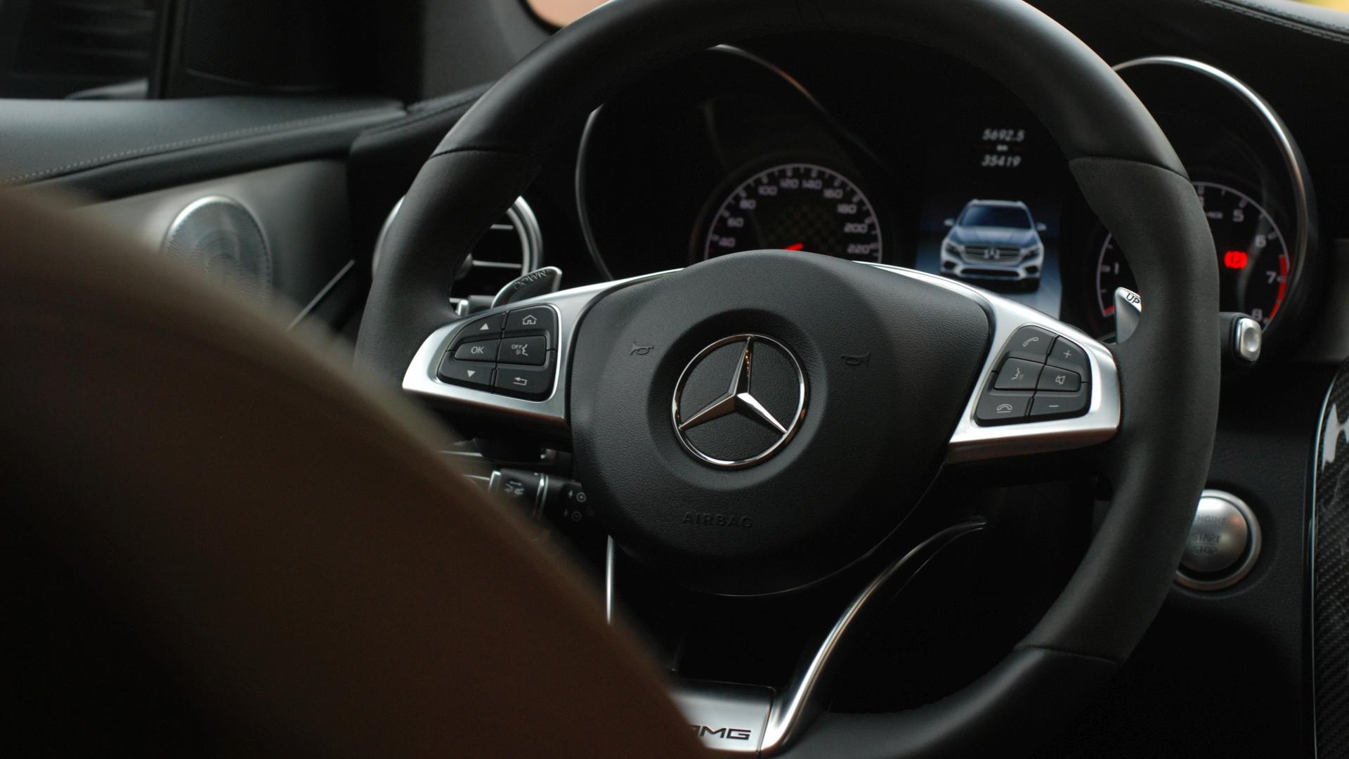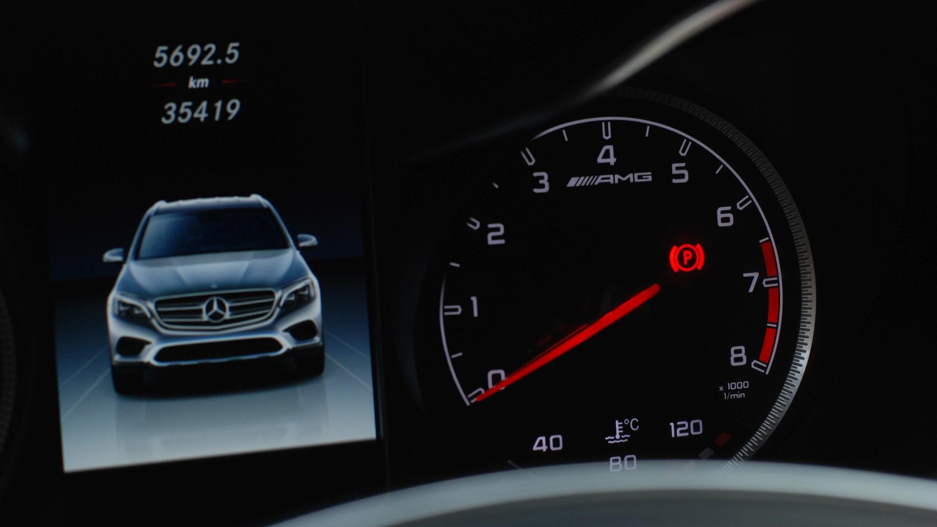 Wskakując za grubą, obitą dwoma rodzajami skóry kierownicę, sygnowaną AMG, można mieć poczucie wyjątkowości tego auta. Wydaje się, że może być tylko lepiej. Rzut okiem na obicie foteli, drzwi, deski rozdzielczej − brązowa skóra robi wrażenie. Na tym jednak koniec wyjątkowości. Cały panel środkowy ma sprawiać wrażenie jednej elegancko-sportowej tafli. Jednak wystarczy otworzyć potężny schowek w poszukiwaniu miejsca na klucze, telefon czy kubek z kawą i cała magia ulatuje. Podobnie jest po zajrzeniu do schowka w podłokietniku. Można odnieść wrażenie, że w miejscach, których nie widać na pierwszy rzut oka, zastosowano nieco tańszy plastik. Problemem dla niektórych kierowców może być też niefortunne położenie ekranu informującego o aktualnym położeniu dźwigni zmiany biegów. Widoczność utrudnia masywny wieniec kierownicy. Na szczęście pozostałe zegary, jak i nieco wystający ekran centralny są czytelne i jedynie przyzwoite w obsłudze − to za sprawą “gładzika”, który wymaga cierpliwości.