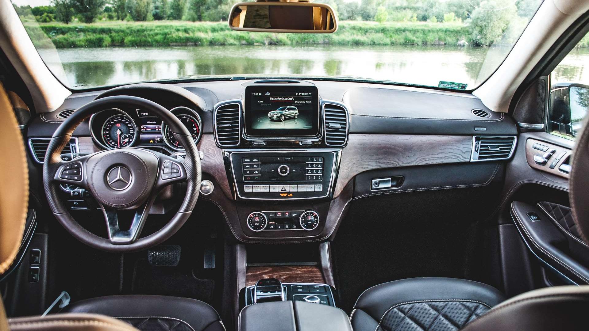 Deska rozdzielcza dość mocno przypomina tę z GLE. W GL-u ekran systemu Command Online wkomponowany był w kształt deski, teraz przypomina przymocowany na jakimś uchwycie tablet. Panele odpowiadające za poszczególne funkcje, jak panel klimatyzacji, radio i systemy wspomagające, zostały odpowiednio pogrupowane, co na pewno poprawia ergonomię i ułatwia znalezienie interesującego nas przycisku w trakcie jazdy.