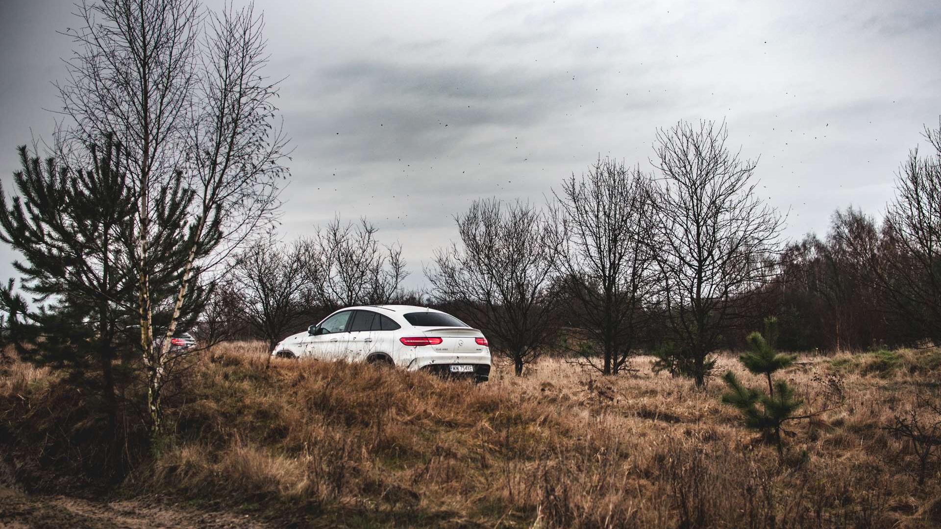 Do batalii z jazdą w terenie stanęły trzy samochody - GLS, GLE Coupe i GLA. W zasadzie to cztery, ale w GLC zasiadali instruktorzy i nie mieliśmy okazji poprowadzić go sami. W przypadku GLE Coupe jazda w terenie nie sprawia żadnego problemu. Widać, że napęd został zaprojektowany z myślą o takich sytuacjach, a w dodatku mamy możliwość wyboru trybu jazdy, z kilkoma opcjami specjalnie do jazdy terenowej, czy systemem DSR, kontrolującym prędkość zjazdu ze wzniesienia w zakresie od 2 do 18 km/h. Jazda przez głębokie błoto, miękką trawę, wjeżdżanie i zjeżdżanie ze wzniesień, to tutaj pestka. Mógłbym to robić jedną ręką. Teren, co prawda, nie był wybitnie trudny, ale mokre, rozjeżdżone błoto to też dobry sprawdzian napędu 4MATIC.