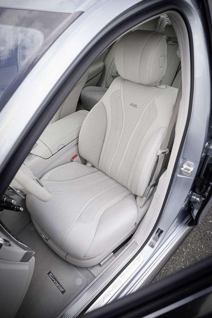 Co odróżnia z zewnątrz S 63 AMG od każdej innej wersji limuzyny ze Stuttgartu? Szczerze mówiąc, zmian jest niewiele. Przedni zderzak z większymi wlotami powietrza, dodatkowe listwy progowe oraz zderzak tylny z dyfuzorem i dwoma delikatnie wystającymi końcówkami wydechu to już połowa z nich. Drugą stanowią zaciski hamulcowe z emblematem AMG widoczne spod specjalnie dedykowanych obręczy oraz napis V8 BITURBO umiejscowiony na przednich błotnikach. To wszystko dostaniemy w standardzie. Lecz jeśli tylko zechcemy wyróżnić swoją limuzynę spośród innych S 63, to producent proponuje nam elementy zewnętrzne z włókna węglowego (włączając w to maskę) oraz ceramiczno-kompozytowy układ hamulcowy. Ten ostatni nie tylko optycznie odmieni samochód, ale również zapewni większe bezpieczeństwo na drodze.