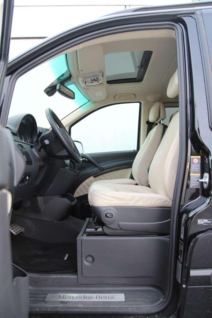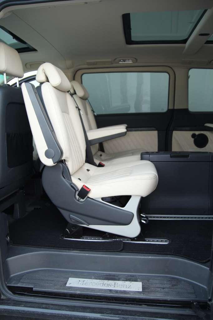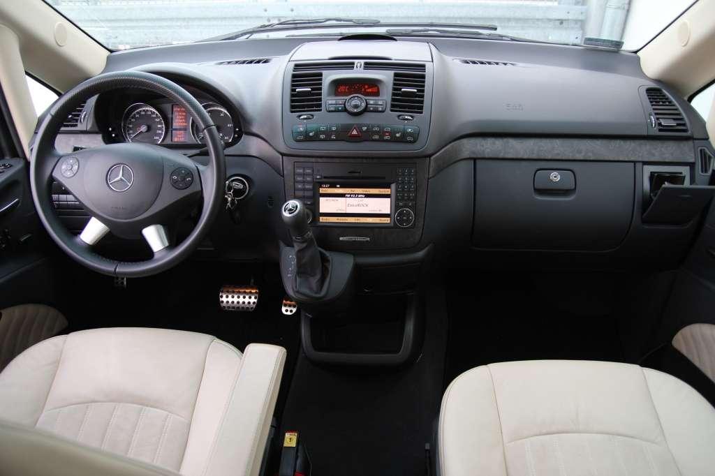 Ogólna wygoda jazdy jest więcej niż satysfakcjonująca. W testowanym Viano znalazło się sześć indywidualnych foteli z regulacją położenia, kąta pochylenia oparcia oraz ustawianymi na wysokość podłokietnikami. Ilość przestrzeni na nogi i głowy jest imponująca. Kolejny plus za możliwość aranżacji wnętrza. Fotele można przesuwać, ustawiać przodem i tyłem do kierunku jazdy, składać oraz demontować. Funkcjonalność wnętrza prezentowanego Viano poprawił opcjonalny stolik ze schowkami oraz rozkładanym blatem. Praktyczne skrytki znajdziemy także w innych częściach kabiny. W zasięgu rąk kierowcy są cztery schowki oraz wolna przestrzeń między fotelami, którą z powodzeniem można wypełnić podręcznym bagażem.