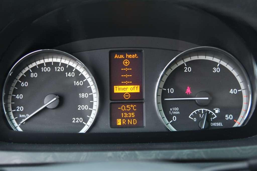 Na tym nie kończyła się lista praktycznych dodatków. Z puli wyposażenia opcjonalnego wybrano m.in. ogrzewanie postojowe. Zegar sterujący system został zintegrowany z panelem wskaźników, co ułatwia zaprogramowanie czasu włączenia urządzenia grzewczego. System może pracować przez 60 minut. Zadba, by temperatura płynu chłodzącego utrzymywała się w przedziale 73-85°C. W samochodzie o gabarytach Viano ogrzewanie postojowe wydatnie zwiększa komfort. Trzeba pamiętać, że turbodiesle mają wysoką sprawność, a co za tym idzie – produkują ograniczone ilości ciepła i długo się rozgrzewają. Podczas siarczystych mrozów wnętrze Viano bez dodatkowej nagrzewnicy zostanie należycie nagrzane dopiero po... kilkudziesięciu minutach jazdy. Cieszy rozsądna cena ogrzewania wodnego - 3694 zł to mniej, niż trzeba zapłacić za analogiczny dodatek w salonach popularnych marek.