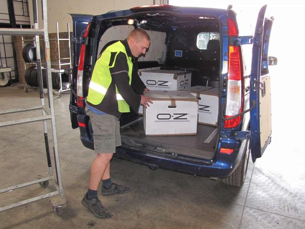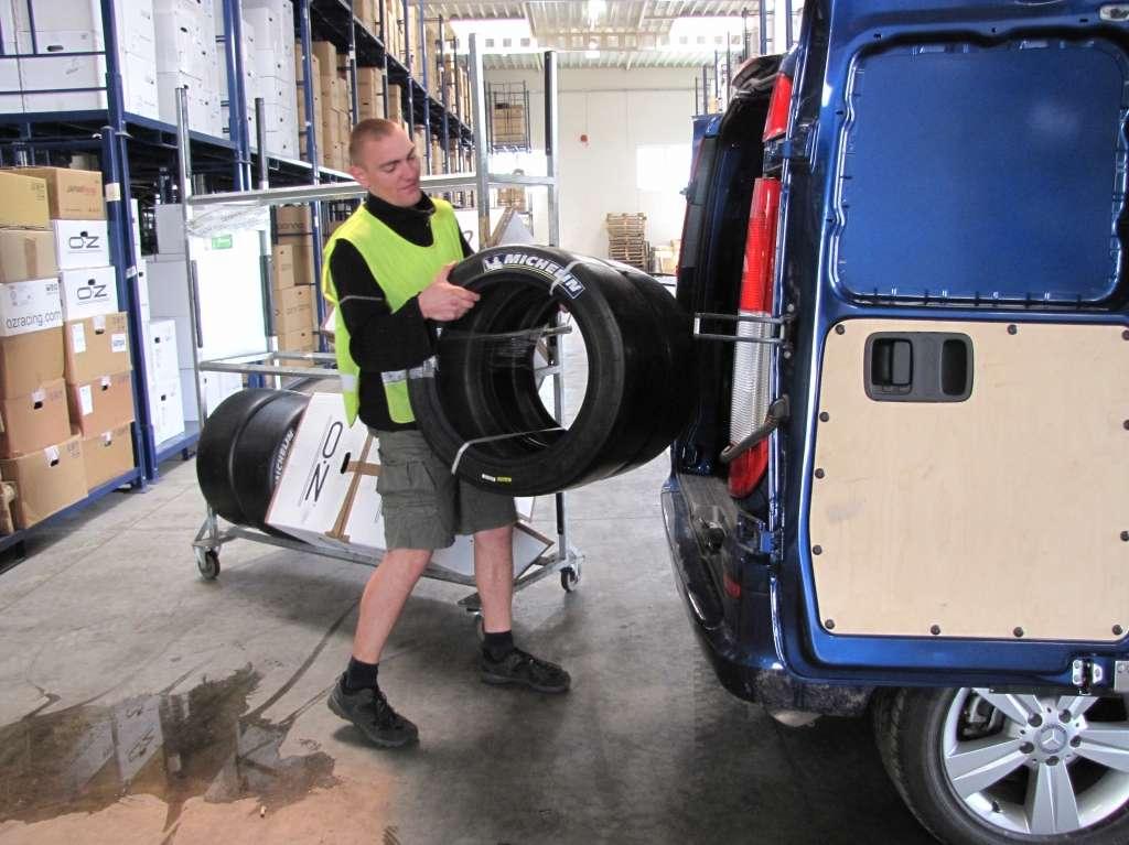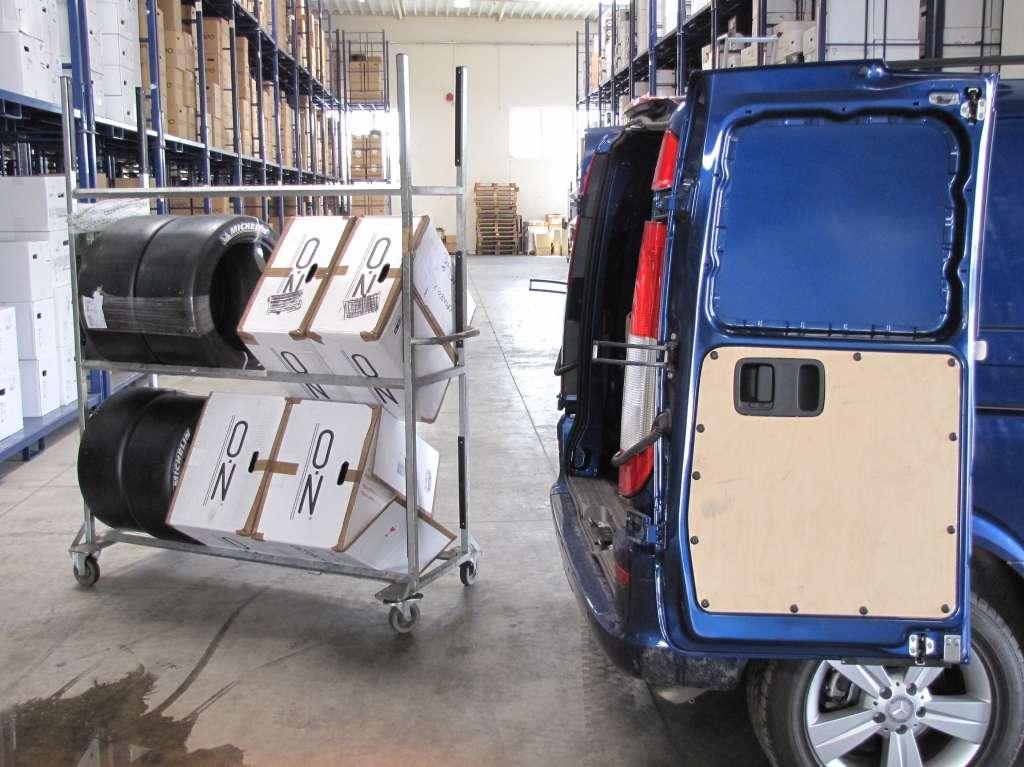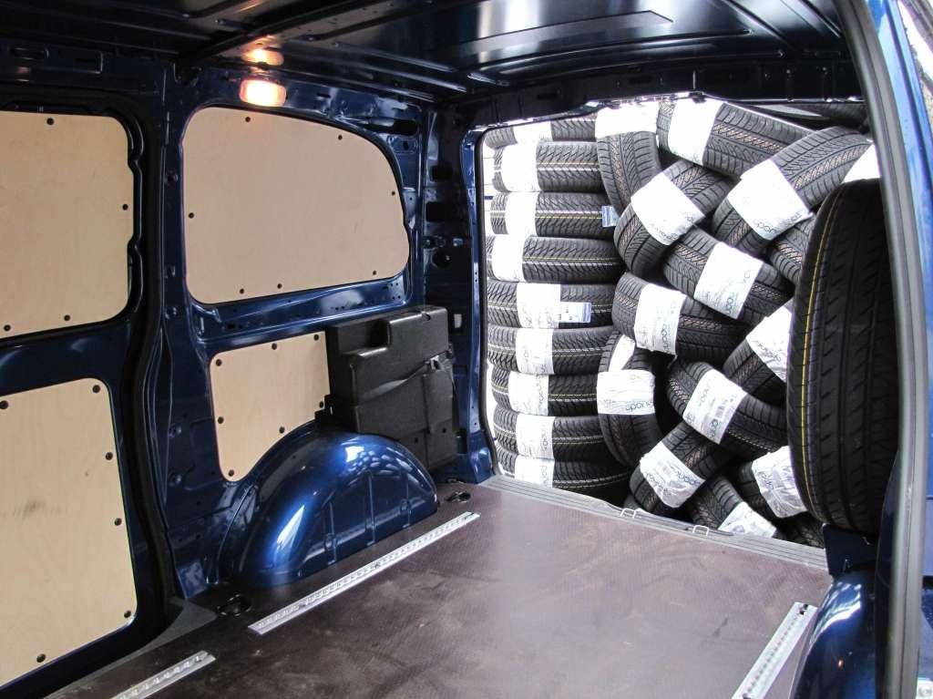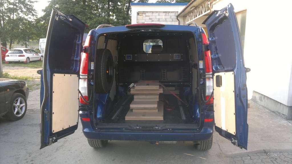 Vito oryginalnie wyposażone było w oczka zamocowane w podłodze służące do montażu przewożonych towarów. Obsługa aut z zakresu ogumienia oraz współpraca z dużym sprzedawcą internetowym wymaga od nas częstego przewozu opon oraz felg. Załadunek tez nie sprawiał większego problemu, cofnięcie pod regał z oponami nie było problemem, ponieważ otwierane na 270 stopni drzwi tylne idealnie to zadane ułatwiało.