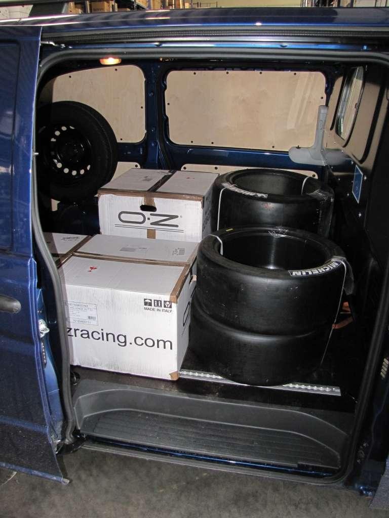 Mieliśmy zamiar wykorzystać auto również, jako samochód holujący przyczepę z autem rajdowym, ale niestety duża ilość kół, skrzyń z częściami zapasowymi, szafki z narzędziami zmusiła nas do wyboru większego auta, gdyż nie byliśmy w stanie się spakować w model którym dysponowaliśmy.