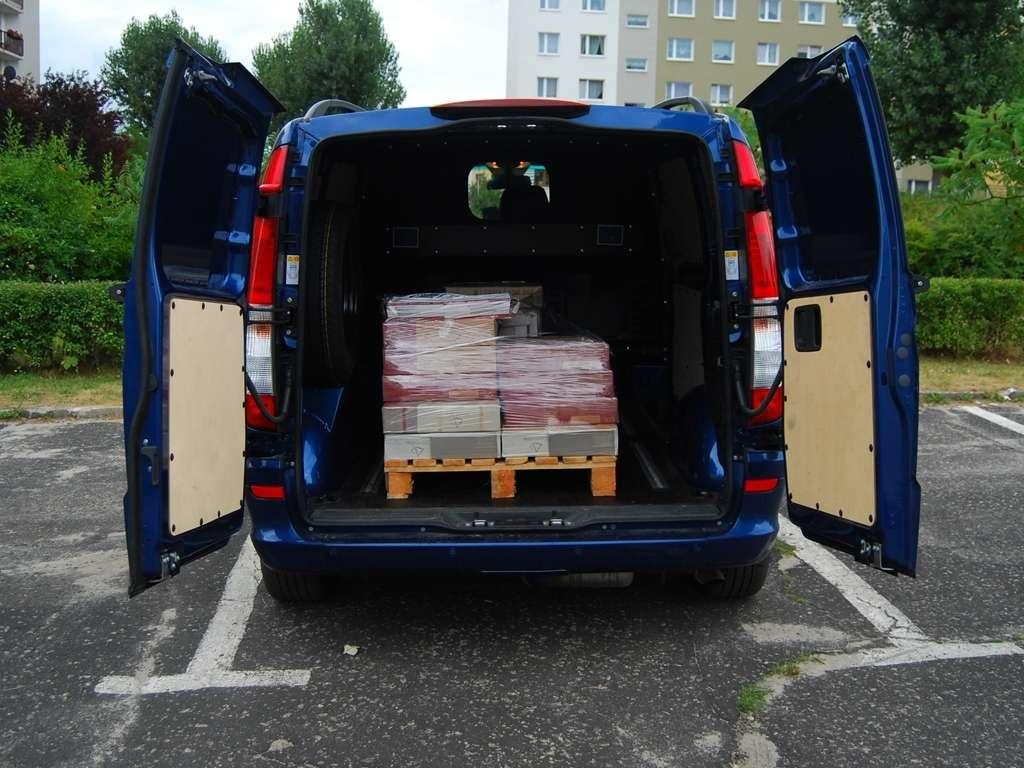 Możliwości załadunku sprawdziliśmy podczas naszych testów. Jak się okazuje, nawet najkrótsza wersja Vito nie ma się czego wstydzić, legitymując się ładownością na poziomie 800 kilogramów. Nasz egzemplarz posiada dodatkowo pakiet „Cargo”, który nie tylko umożliwia solidne zabezpieczenie towarów „na pace”, ale i obejmuje jej drewniane wykończenie. Jak łatwo się domyślić, nie jest ono niezbędne do pracy. Warto wspomnieć, że przy odblokowaniu tylnego skrzydła w celu podjazdu pod rampę, nie możemy otworzyć drzwi przesuwnych. Chwila nieuwagi będzie nas sporo kosztować. Zauważyliśmy również problem z zamkiem centralnym – czasami przestrzeń ładunkowa pozostawała otwarta, pomimo usilnych prób zamknięcia samochodu za pomocą przycisku na kluczyku. To jedna z najbardziej znanych dolegliwości Mercedesa.