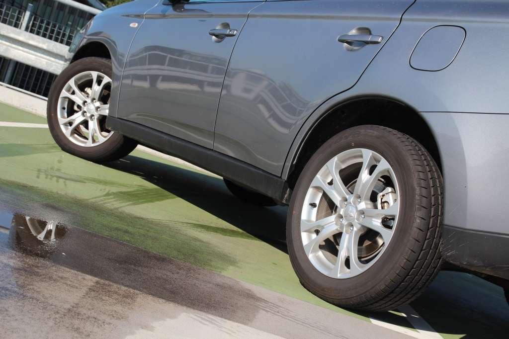 Mitsubishi poinformowało również, że w ramach modernizacji zmieniono nastawy zawieszenia. Korekty nie oznaczają poważnej poprawy właściwości trakcyjnych. Miękkie podwozie oraz opcjonalne koła w rozmiarze 225/55 R18 bardzo skutecznie filtrują nierówności, jednak komfort jest okupiony przeciętnym prowadzeniem. Outlander wyraźnie przechyla się na zakrętach, a na ciasnych łukach odciążone, wewnętrzne koło potrafi zabuksować. Do dynamicznej jazdy zniechęca też niezbyt precyzyjny układ kierowniczy. Na dobre słowo zasłużył natomiast mechanizm wybierania biegów. Jest dokładny, a przestawianiu dźwigni w kolejne położenia towarzyszy przyjemny opór.