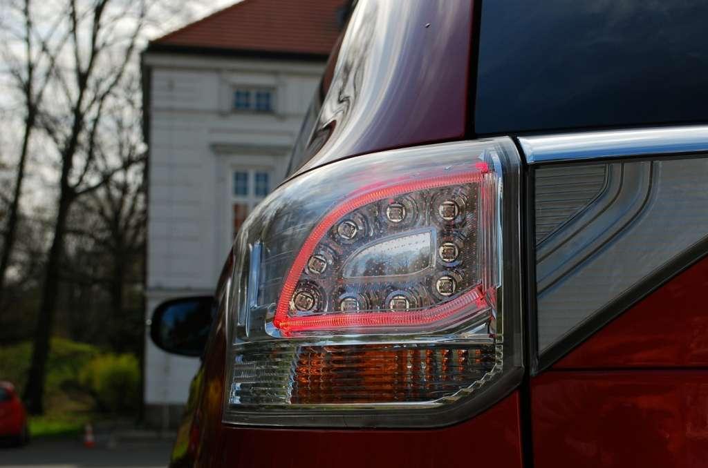 Trzecia generacja Outlandera wydaje się być większa i bardziej masywna od swojego poprzednika. Owszem, masywniejsza jest, co budzi akurat we mnie większe zaufanie w kwestii bezpieczeństwa podróży. Również testy Euro NCAP potwierdzają moje odczucia – nowy Outlander uzyskał 5 gwiazdek w testach zderzeniowych, czyli o jedną więcej, niż jego przodek. Kiedy rzucimy okiem na wymiary trzeciej i drugiej generacji zauważymy, że jedyne co się zauważalnie zmieniło to rozstaw osi, który wydłużył się do 2695 mm. Szerokość (1801 mm) oraz wysokość (1679 mm) pozostały praktycznie bez zmian, a długość auta (4656 mm) nawet minimalnie zmalała. A co zmieniło się na zewnątrz po faceliftingu? Gdybym miał strzelać w ciemno, to obstawiałbym oczywiście zastosowanie wszechobecnego w samochodach oświetlenia diodowego. Nie inaczej postąpiono w Outlanderze, który otrzymał z przodu światła do jazdy dziennej oraz reflektory przeciwmgielne wykonane w technologii LED. Aby symetrycznie obdzielić samochód LEDami, także tylne światła wykonano w tej technologii.