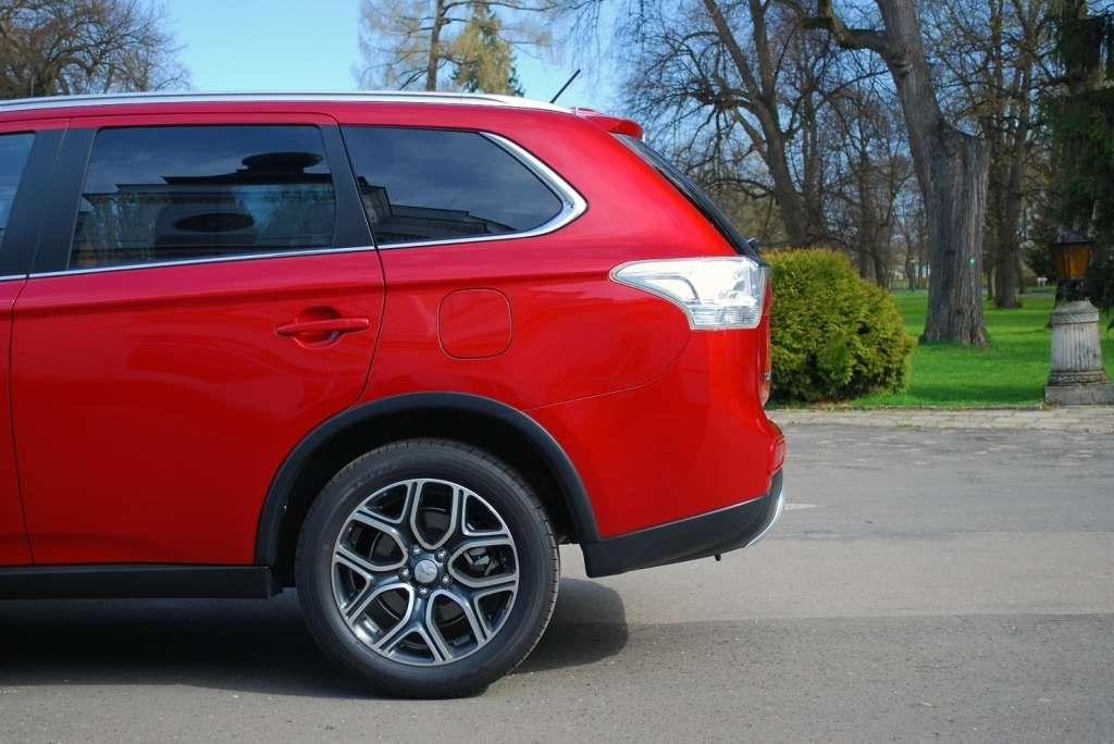 Zmiany nie ominęły również przedniego grilla, którego szerokie chromowane listwy ożywiły odrobinę wygląd Outlandera. Zderzaki z przodu oraz z tyłu wyposażono w dodatkową srebrną osłonę, charakterystyczną dla samochodów typu SUV. Profil Outlandera wyróżniają nowe srebrne relingi, a wersja z napędem 4x4 pochwalić się może plastikowymi listwami na nadkolach. Dopełnieniem zmian jest niedostępny do tej pory lakier w kolorze Orient Red, a także nowy wzór osiemnastocalowych obręczy aluminiowych. Przyznam, że projektantom należy się ukłon, ponieważ kosmetyczne zmiany spowodowały, że Outlander trzeciej generacji stał się bardziej wyrazisty. Po prostu – bryła tego samochodu wymaga odpowiednio dobranego koloru, dużych kół oraz przełamujących monotonię dodatków. Niestety, nie wszystkie z wymienionych detali dostaniemy w standardzie, a to oznacza, że aby auto wyglądało jak nasza testówka, będziemy musieli głębiej sięgnąć do portfela. C'est la vie!