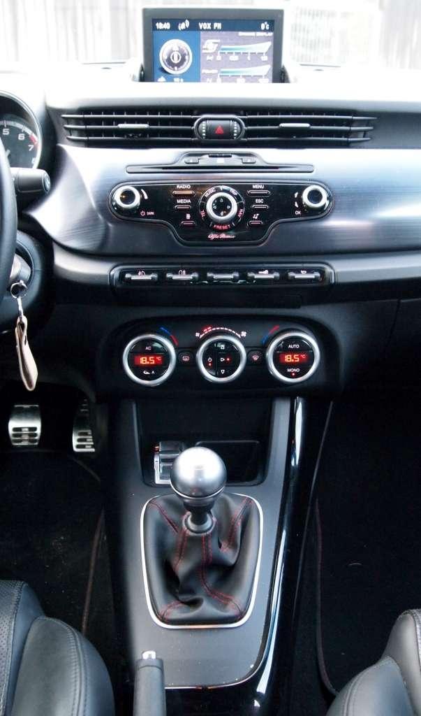 Moc atrakcji czeka również we wnętrzu. Niebanalny kokpit wykonano z wysokiej jakości materiałów. W odmianie Quadrifoglio Verde sportowy klimat budują wstawki ze szczotkowanego aluminium, czerwone przeszycia skóry na kierownicy oraz aluminiowe nakładki na pedały. Fotele są dobrze wyprofilowane i wygodne. Można usiąść naprawdę nisko. Kolumna kierownicy jest regulowana w dwóch płaszczyznach, a oparcia foteli, jak przystało na sportowy samochód, dają się ustawić pionowo. Zespół projektujący kabinę skupił się na jej prezencji. Niestety zapomniał o schowkach oraz intuicyjnym w obsłudze systemie multimedialnym czy tempomacie, którym steruje się przy użyciu dodatkowej dźwigni na kolumnie kierownicy. Poważny problem będą miały osoby przyzwyczajone do wożenia napojów w samochodzie. W bocznych kieszeniach drzwi nie uda się schować butelki.