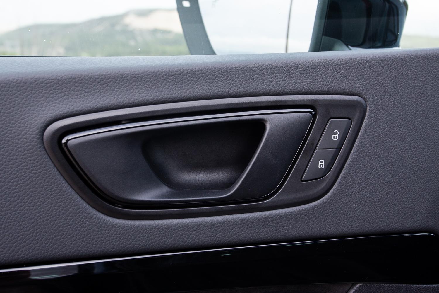 Wnętrze utrzymano w ciemnej tonacji, nawet klamki drzwi wykonano z czarnego matowego tworzywa.