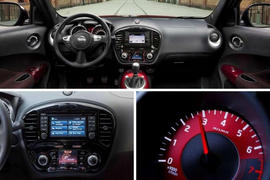 Na koniec naszej wycieczki po specyfikacjach wyposażenia małego Nissana czeka nas przyjrzenie się wersji NISMO. Dostępna jest ona wyłącznie z 200-konnym silnikiem 1.6 DIG-T, a jednocześnie jest jedyną wersją oferowaną dla tego motoru. Wyróżnikami NISMO są z zewnątrz specjalnie przygotowane, 18-calowe obręcze, diodowe światła do jazdy dziennej, spojler umieszczony na tylnej klapie oraz rura wydechowa o średnicy 10 cm. Wewnątrz poza mocno wyprofilowanymi siedzeniami i czerwoną tarczą obrotomierza zastosowano sportowe wykończenie kabiny obejmujące m.in. zamszową tapicerkę, kierownicę obszytą skórą i alcantarą, aluminiowe nakładki na pedały, liczne czerwone przeszycia oraz - rzecz jasna - widoczne tu i ówdzie emblematy NISMO.