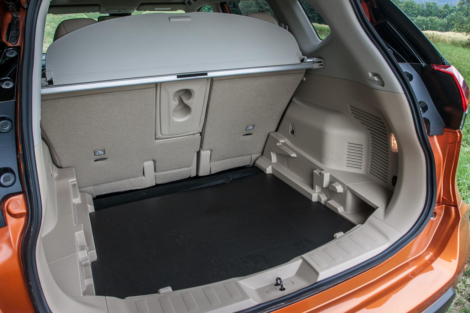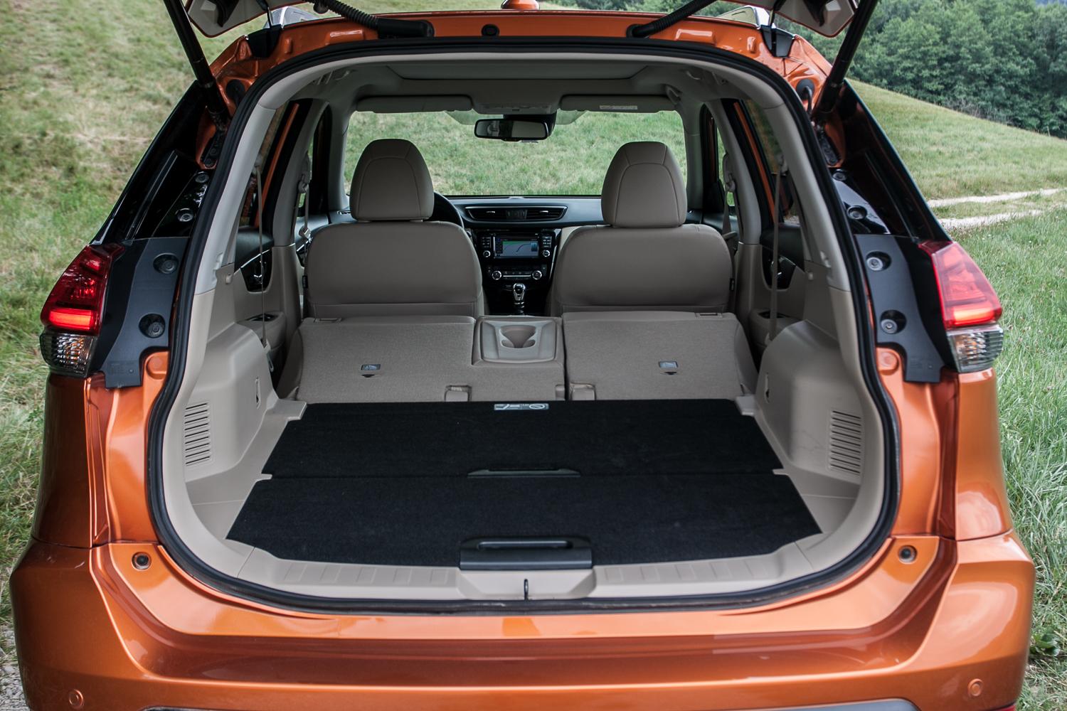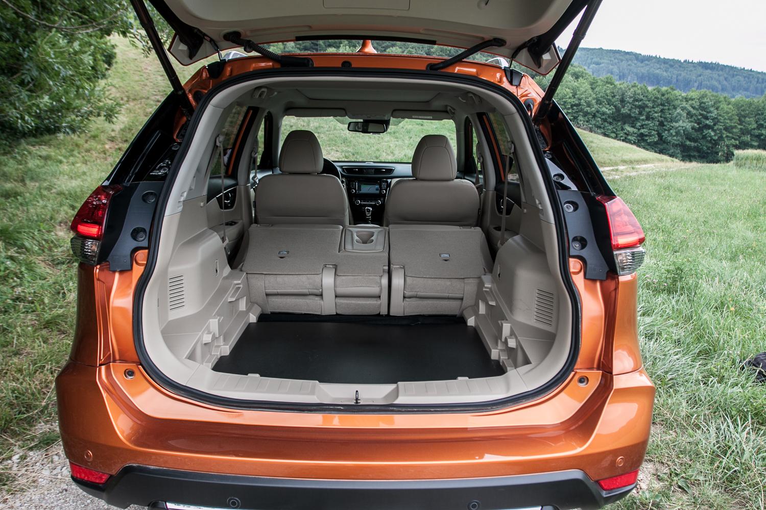 Wyposażenie testowanej przez nas wersji TEKNA, która była wyposażona w najmocniejszy silnik wysokoprężny o mocy 177 KM, napędem na obie osie i manualną sześciobiegową skrzynię biegów, było adekwatne do katalogowej ceny, czyli 169 150 zł z lakierem metalizowanym. Choć cena nie jest niska, pocieszający jest fakt, że w tej cenie otrzymujemy kompletnie wyposażony samochód. Na pokładzie znajdziemy między innymi: asystenta pasa ruchu i martwego pola, kamery 360 stopni, sterowane elektrycznie fotele ze skórzanymi obiciami, otwierane okno dachowe, światła FULL LED czy nagłośnienie BOSE®. Czy czegoś zabrakło do pełni szczęścia? Nissan nie oferuje opcji wentylacji foteli przednich, a pełna skóra bez perforacji daje się we znaki w upalne dni. Na tę chwilę niedostępny jest także aktywny tempomat – ma zadebiutować już za kilka miesięcy z nowym systemem jazdy półautonomicznej o nazwie Nissan ProPILOT, choć klienci, którzy zechcą zdecydować się na premierowe egzemplarze muszą zapomnieć o takich udogodnieniach. Pasażerowie podróżujący w drugim rzędzie nie mogą narzekać na brak komfortu – miejsca na nogi jest naprawdę sporo, oparcie kanapy ma regulowany kąt nachylenia, a skrajne miejsca mają opcję podgrzewania. Za dopłatą 6500 zł w wersji N-CONNECTA (w cenie także szyberdach) oraz 4000 w wersji TEKNA, X-Trail może stać się samochodem siedmioosobowym. Dwa miejsca „w bagażniku”, jak w większości samochodów w tym segmencie oferujących podobne rozwiązanie, należy traktować okazjonalnie, a wygodnie podróżować na nich mogą młodsi pasażerowie. Dodatkowe dwa miejsca ograniczają pojemność bagażnika (podniesiony poziom podłogi) z 565 litrów do 445 litrów – oczywiście w trybie pięcioosobowym.