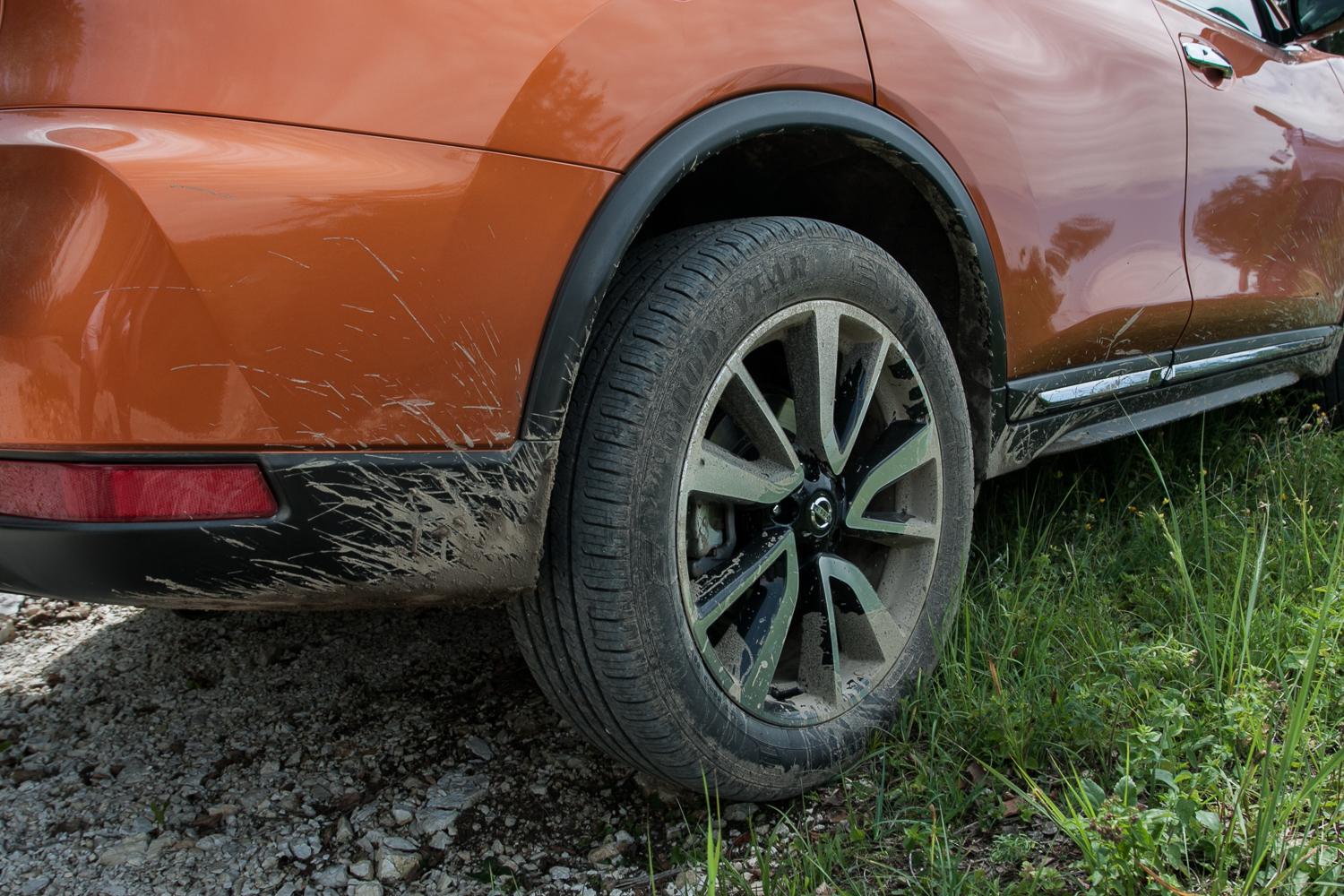 Na asfalcie SUV Nissana jest dość przewidywalny. Nawet gdy dynamiczniej pokonujemy zakręty, pozwala pewnie utrzymać tor jazdy. Układ kierowniczy nie pomaga, ale też nie przeszkadza w precyzyjnym prowadzeniu, natomiast samo wspomaganie kierownicy jest świetne, zwłaszcza podczas manewrów parkingowych na felgach o średnicy dziewiętnastu cali. Karoseria, jak na SUV-a, nie przechyla się niebezpiecznie na boki, nawet przy gwałtowniejszych manewrach, a kontrola trakcji „wtrąca się” dosyć późno i niezbyt gwałtownie. Zawieszenie zestrojono komfortowo, ale nie przesadnie miękko, dzięki czemu nie ma problemu z pokonywaniem głębokich nierówności (nawet na felgach 19”), a jednocześnie zachowana jest pewność prowadzenia. Krótko podsumowując – X-Trailem jęździ się bardzo przyjemnie, a topowy silnik Diesla wydaje się być jednocześnie minimum i optimum.