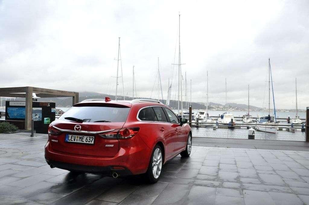 Kiedy odzyskałem oddech na lotniskowym parkingu to okazało się, że patrzę na kombi z najmocniejszym silnikiem i automatyczną skrzynią biegów. Droga do hotelu prowadziła autostradą, która po 60 km zmieniła się w lokalną drogę, więc miałem dużo czasu na sprawdzenie auta w praktyce. Zimny silnik tylko w pierwszych minutach pracy zdradzał, że pracuje na ropę. Później niemal zupełnie zamilkł i odzywał się dopiero przywoływany mocnym wciśnięciem gazu do oporu. W odróżnieniu od CX-5, gdzie kierowca nie miał na początku do dyspozycji funkcji kick-down, tu jest od razu i łatwo ją wyczuć pod prawą nogą. Skrzynia biegów nie każe na siebie długo czekać, zrzuca parę biegów i dopiero kiedy wskazówka obrotomierza przekracza 4 tysiące, silnik ponownie staje się słyszalny. Towarzyszy temu mocny masaż pleców całej załogi auta i to w pełnym zakresie dopuszczalnych przepisami prędkości.