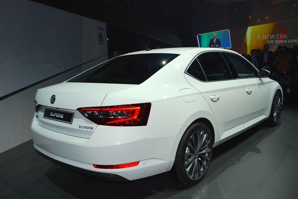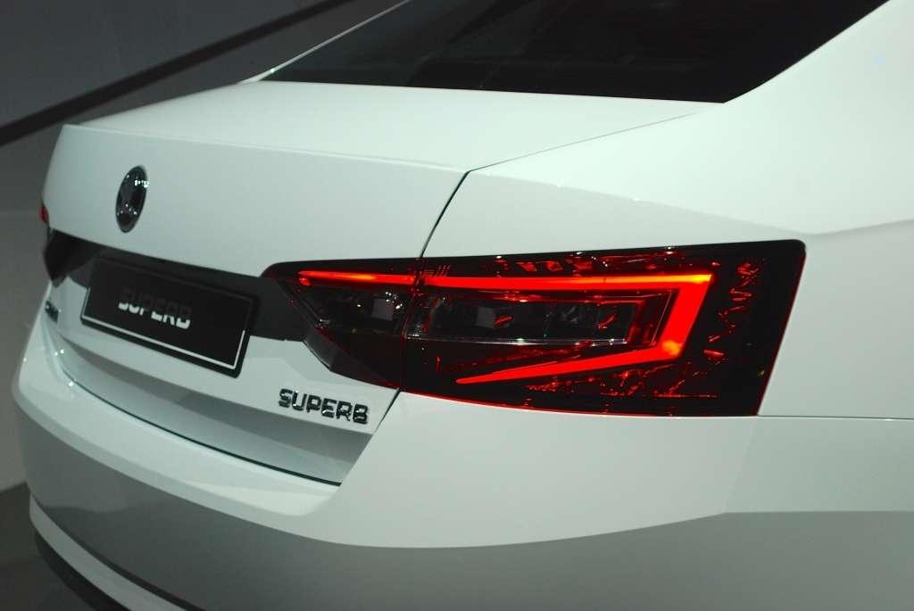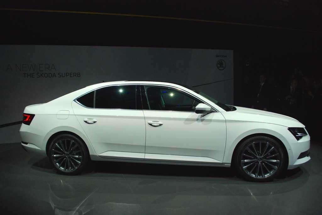 Wygląd zewnętrzny Superba nie jest specjalnym zaskoczeniem. Wiadomo było, że obłe kształty poprzedniej generacji zastąpione zostaną zdecydowanie nakreślonymi liniami. Szef designu Skody Jozef Kabaň mówi o nawiązaniach do sposobu cięcia czeskiego kryształu. I coś w tym jest, bo projekt Superba jest ostry niczym krawędzie tegoż kryształu. Na wygląd miała również wpływ wspomniana wcześniej platforma MQB. Dzięki niej możliwe było obniżenie linii maski poprzez niższe osadzenie silnika oraz skrócenie przedniego zwisu o 61 mm. Zamierzeniem projektantów było to, aby stworzyć duże i jednocześnie proporcjonalne nadwozie. Oglądając auto dookoła trudno cokolwiek zarzucić efektom ich starań, które szły jednocześnie w parze z optymalizacją aerodynamiki nadwozia. Współczynnik oporu powietrza Cx 0,275 jest tego żywym przykładem. Nowy Superb pomimo dużych gabarytów prezentuje się elegancko, lekko i dostojnie.