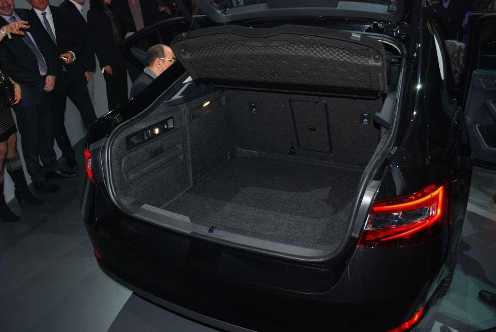 Wnętrze Superba zaskakuje ilością miejsca zarówno z przodu, jak i z tyłu. Nie ma tu mowy o jakimś niedostatku przestrzeni – wszyscy pasażerowie będą pod tym względem zadowoleni. Miejsca jest jeszcze więcej, niż u poprzednika – tak na nogi, jak i nad głową. Także bagażnik zwiększył swoją objętość (o 30 litrów) i oferuje teraz 625 litrów. Położenie oparć tylnej kanapy pozwoli załadować do Superba 1760 litrów, a opcja złożenia oparcia fotela pasażera spowoduje, że przewiezienie przedmiotów o długości do 3,1 metra powinno zakończyć się powodzeniem. Nieoczekiwanie Skoda zrezygnowała z podwójnego sposobu otwierania klapy bagażnika – teraz pokrywa otwiera się tylko wraz z szybą.