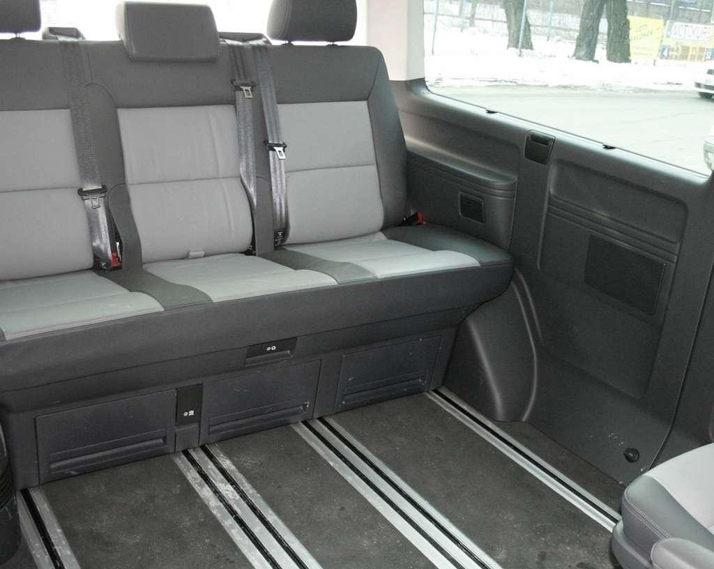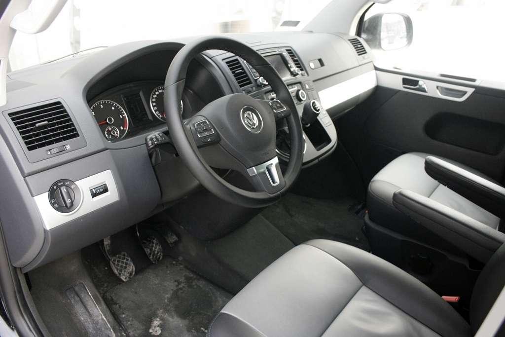 Pasażerowie pierwszego i drugiego rzędu 7-osobowego Multivana na komfort nie mogą narzekać – mają do dyspozycji bardzo wygodne fotele z dobrym podparciem bocznym i podłokietnikami po obu stronach z opcją regulacji wysokości. Fotel kierowcy i pasażera jest podgrzewany z regulacją trzystopniową. Wszystkie siedzenia są obszyte skórą i mają pochylane oparcia. Łatwo się je składa, przesuwa i demontuje. Fotele drugiego rzędu mają możliwość obracania, dzięki czemu wnętrze można zamienić w salkę konferencyjną, gdzie pasażerowie mogą swobodnie rozmawiać face-to-face. W trzecim rzędzie komfort nieznacznie obniża trzyosobowa kanapa, która nie posiada trzymania bocznego sylwetki. Plusem jest możliwość jej łatwego przesuwania w przód i w tył oraz funkcja spania.