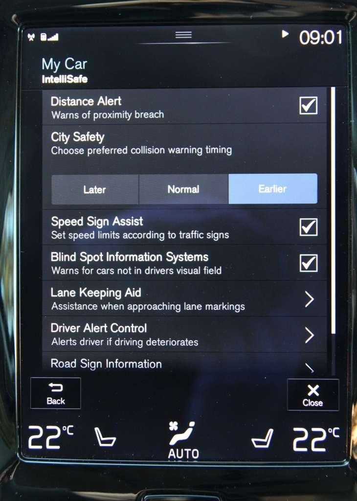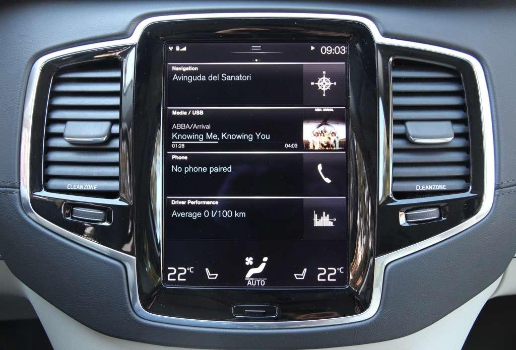 Projektanci wnętrza postawili na minimalizm. Miejsce najeżonej przyciskami konsoli środkowej zajął wielofunkcyjny ekran systemu multimedialnego. „Pokładowy tablet” zapewnia dostęp do multimediów, poczty i aplikacji, a także służy do sterowania wentylacją i zarządzania pozostałymi elementami wyposażenia z zakresu komfortu i bezpieczeństwa. Volvo ustrzegło się wpadek, które doskwierają w innych samochodach z podobnie urządzonymi kokpitami. Najważniejsze z perspektywy codziennej eksploatacji ikony do regulacji siły i temperatury nawiewu oraz intensywności podgrzewania siedzeń pozostają stale widoczne. Kolejny plus za przejrzystość i sporych rozmiarów „cegiełki” menu, które ułatwiają odczytywanie informacji i zmianę ustawień podczas jazdy.