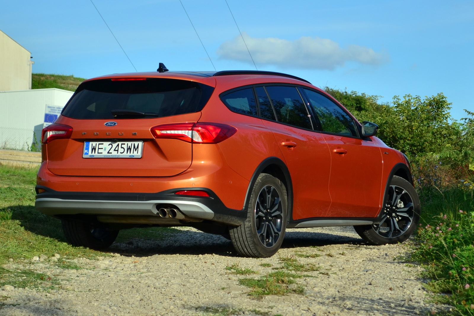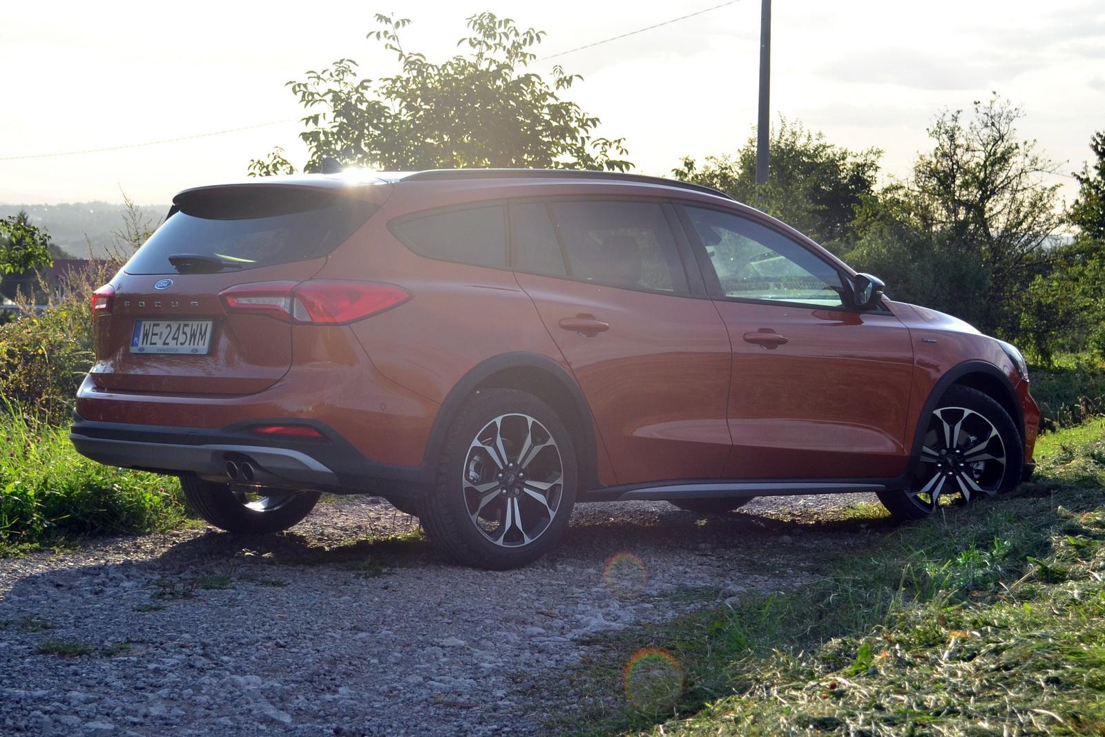 Nasza testowa odmiana Active od zwykłego Focusa różni się kilkoma detalami takimi jak inne zderzaki, czarny dach czy większe felgi, których rozmiar nieco ginie z powodu plastikowych dokładek na nadkolach i progach.