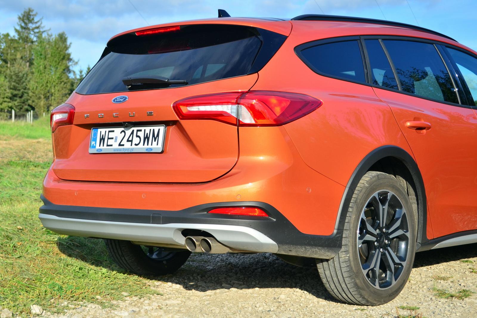 Nie można mieć też zastrzeżeń do tyłu Forda Focusa Active. Nadwozie kombi wieńczą popularnymi obecnie lampy z ostrymi liniami świetlnymi. Ford uległ modzie na pisanie wielkimi literami nazwy modelu na środku tylnej klapy i trzeba przyznać, że wygląda to estetycznie i wraz z nowym – bardziej trójwymiarowym – logo marki dopełnia wygląd całej karoserii.