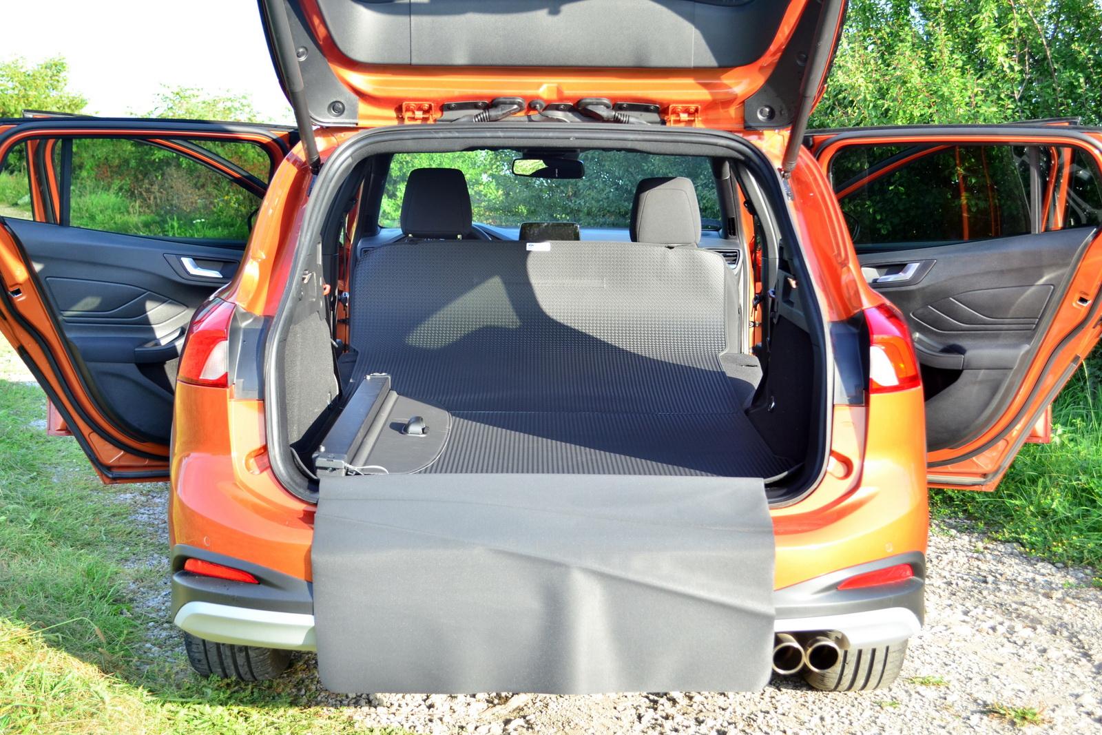 W bardzo praktyczny sposób Ford rozwiązał także możliwość składania tylnych siedzeń Focusa Active. Można to zrobić przyciskiem na szczycie oparcia, ale można także poprzez pociągniecie dźwigni na boczkach bagażnika przy krawędzi tylnej klapy. To bardzo wygodne rozwiązanie i aż dziwne, że tak niewielu producentów je stosuje. Dzięki kolejnej, kosztującej jedynie 250 złotych, opcji bez problemu przewieziemy także mocno zabrudzone rzeczy. Ten element to umożliwiająca wyściełanie całej przestrzeni bagażowej gumowa mata z częścią osłaniającą zderzak przed zarysowaniem. Zaczyna się ona przy samej krawędzi tylnej klapy, a dzięki zapinanym na zatrzaski tasiemkom – kończy na zagłówkach przednich siedzeń.