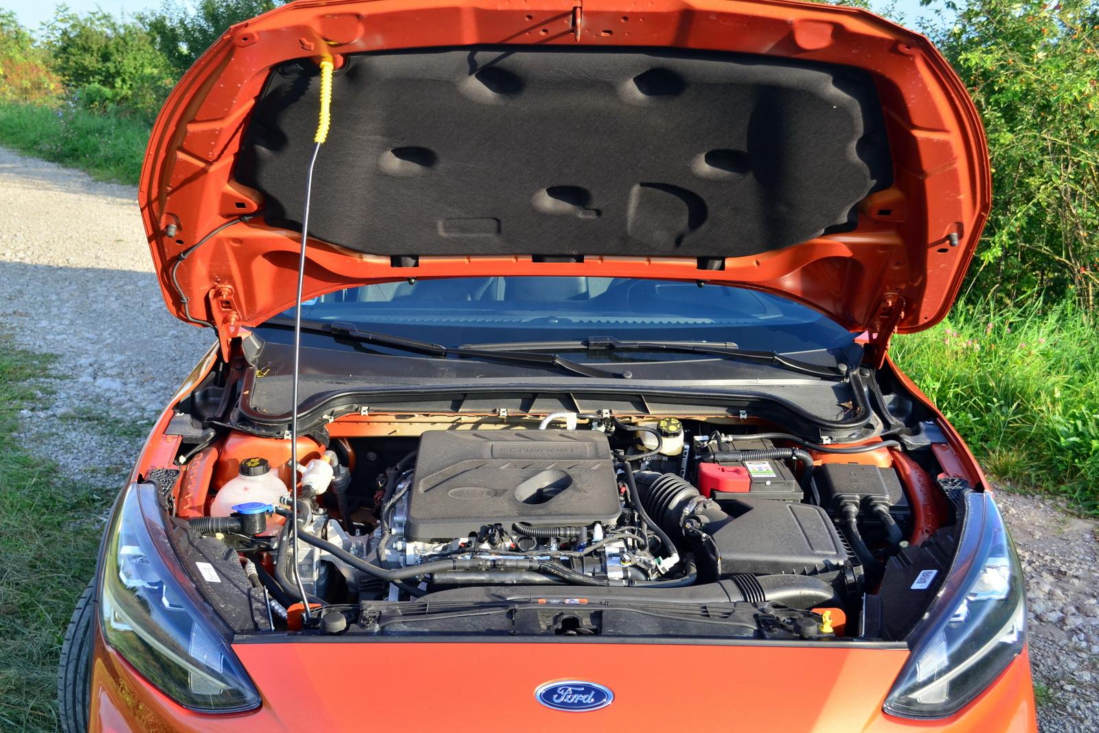 Na tym jednak zachwyty się kończą. Najnowszego Focusa dostaniemy w kilka wariantach mocy uzyskiwanych z dwóch pojemności silników. Niestety, oba będą miały zaledwie trzy cylindry. Pod maską naszego testowanego egzemplarza Focusa Active pracował większy dostępny motor o pojemności zaledwie niespełna 1500 cm3 i mocy aż 182 KM. Pomijając dyskusyjny dźwięk tej jednostki (przywodzący na myśl wschodnioniemieckie dwusuwy znane z Trabantów i Wartburgów), który na szczęście można zagłuszyć doskonałym systemem audio, po takiej mocy spodziewać by się można naprawdę dobrych osiągów. Niestety, zostały one wyrzucone wraz z czwartym cylindrem. Nie można nazwać Forda Focusa Active zawalidrogą, ale pierwsza setka osiągana dopiero po blisko 9 sekundach w samochodzie kompaktowym o mocy prawie 200 koni? Wpływ na taki stan rzeczy ma na pewno niemała masa własna Focusa Active wynosząca aż 1445 kilogramów. Jeździ się jednak nie samymi przyspieszeniami, a głownie elastycznością, a ta jest na bardzo dobrym poziomie.