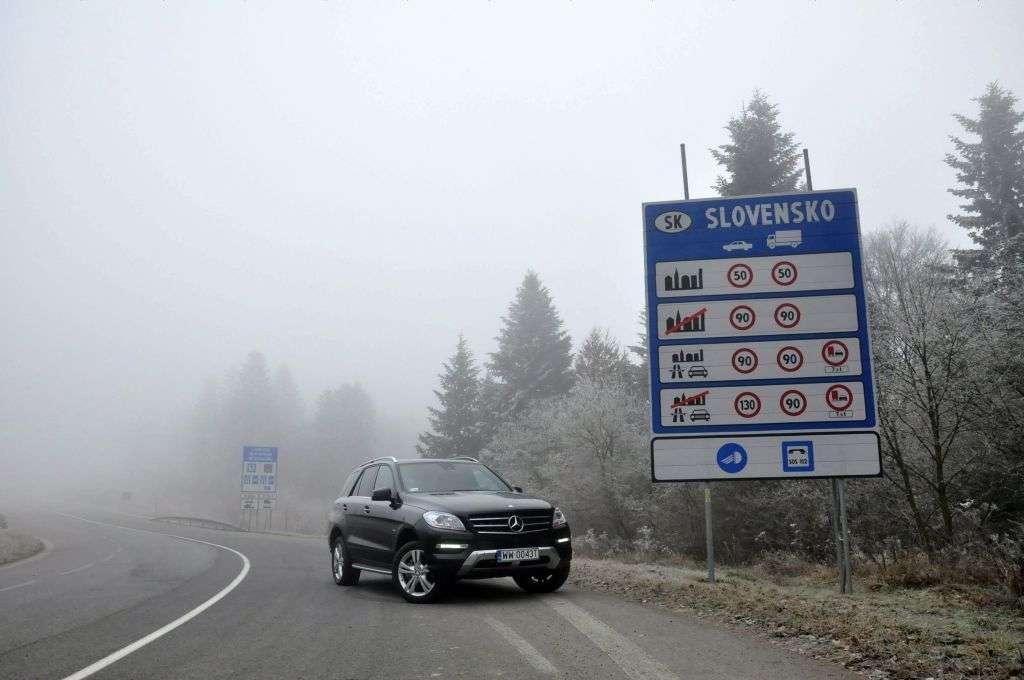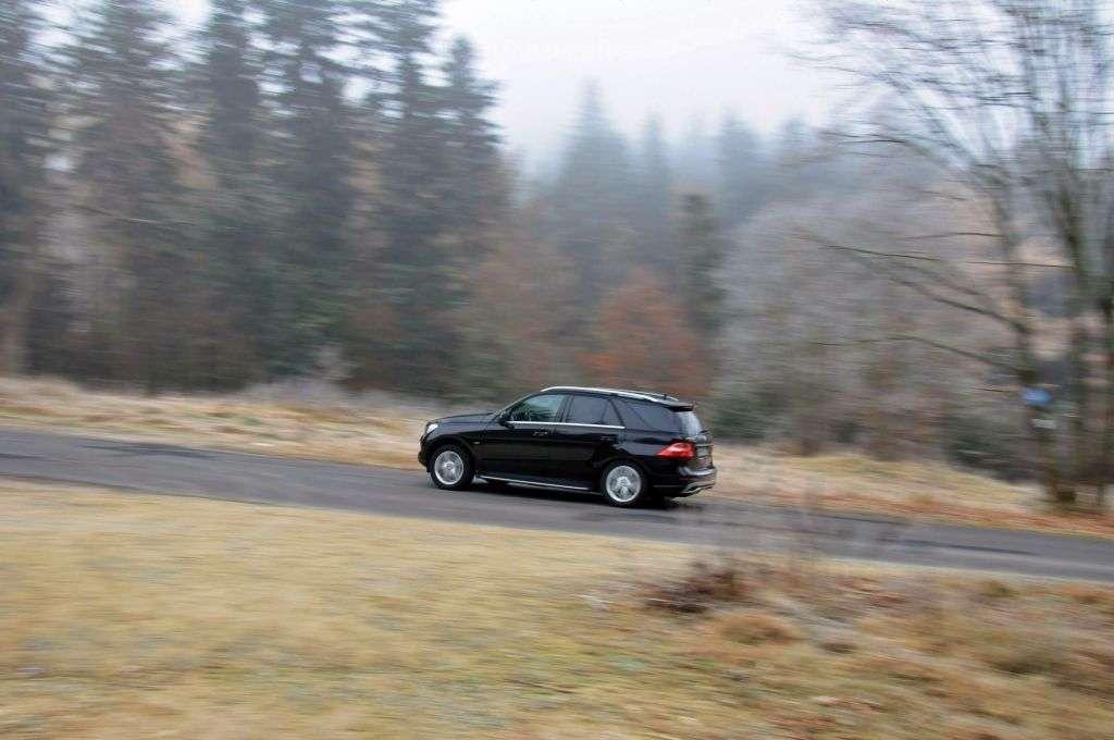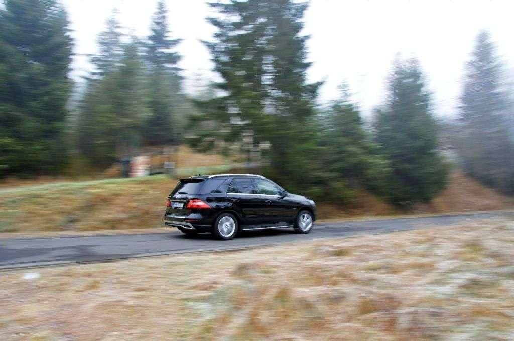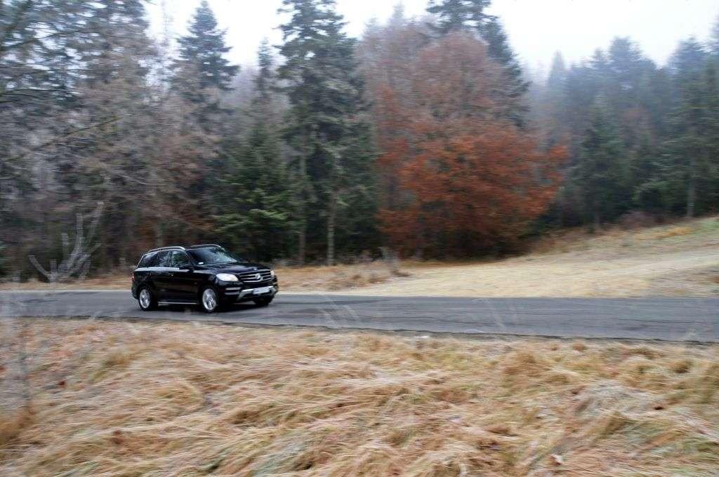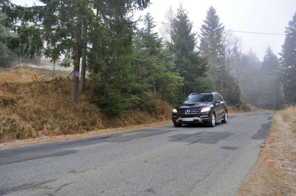 Następnego dnia po uroczystości dziennikarzom zgromadzonym z tej okazji, udostępniono do jazd testowych kilka modeli Mercedesa z napędem na wszystkie koła. Był tam nawet model GL przeznaczony dla Justyny Kowalczyk – oczywiście w złotym kolorze. Po szybkim losowaniu w moje ręce trafiły kluczyki do Mercedesa Klasy M z 258-konnym silnikiem Diesla pod maską i pneumatycznym zawieszeniem, które niedługo miało się bardzo przydać…