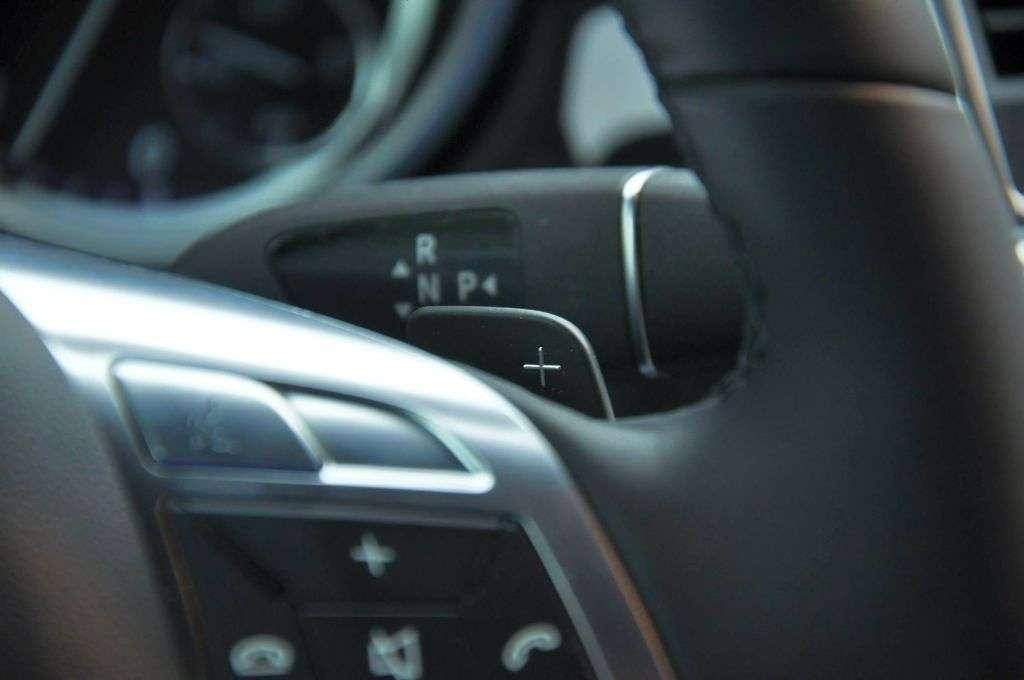Przeszliśmy do zdjęć w ruchu, które pozwoliły dokonać pierwszej oceny auta. Pomimo sporych wymiarów zewnętrznych (4.8 m długości i 2.15 m szerokości) auto jest niezwykle poręczne. Dzięki typowemu dla Mercedesów małemu promieniowi skrętu (a za taki należy uznać wynik 11,8m – nie zapominajmy, że mamy do czynienia z kolosem o niemal 3-metrowym rozstawie osi) auto zwinnie zawraca na wąskiej drodze, aby następnie szybko i płynnie rozpędzić się i przemknąć przed okiem aparatu robiącemu kilka zdjęć na sekundę. Przy takich manewrach łatwo docenić sterowanie automatyczną skrzynią biegów drążkiem umieszczonym pod kierownicą – zmiana kierunku jazdy jest prosta i błyskawiczna, a drążek jest zawsze pod ręką. Przyszłym nabywcom sugeruję jednak zainwestować w kamerę cofania, ponieważ widoczność do tyłu pozostawia w tym wielkim aucie (pojemność bagażnika przekracza 2 metry sześcienne) sporo do życzenia.