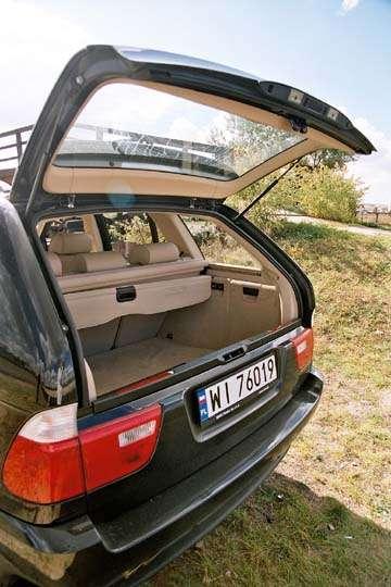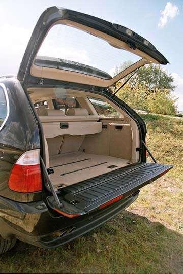 BMW ustępuje swoim konkurentom pod względem pojemności bagażnika. X5 oferuje bowiem 465 litrów i 1550 po złożeniu tylnych miejsc. Dla porównania Mercedes M dysponuje przestrzenią bagażową o pojemności 635 i 2020 litrów po złożeniu tylnych siedzeń a VW Touareg odpowiednio 555 i 1570 litrów.