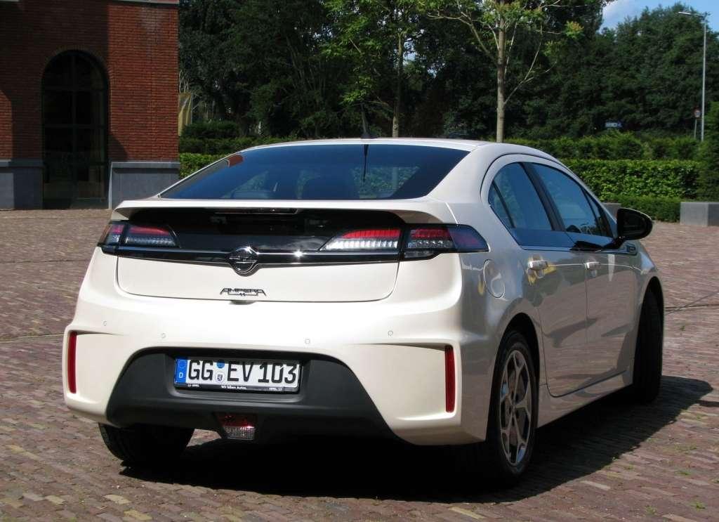 Poza kosmiczno–filmowym skojarzeniem barw linia samochodu jest niemal klasyczna – ot, rodzinne, kompaktowe auto z trzybryłowym nadwoziem. Opisujące je liczby to 449,8 cm w przypadku długości, 178,7 cm szerokości, 143,9 cm wysokości i 268,5 cm rozstawu osi. Tylny pas wygląda nieco inaczej niż w większości obecnych samochodów, kojarzy się jednak nie z kosmosem, ale z USA. Pewnie dlatego, że Ampera to bliźniak Chevroleta Volta. Tylne światła zmieniły się nieco, przednie znacznie bardziej. Zastosowano nowy znak rozpoznawczy Opla – przednie światła i halogeny połączono kształtem bumerangu.