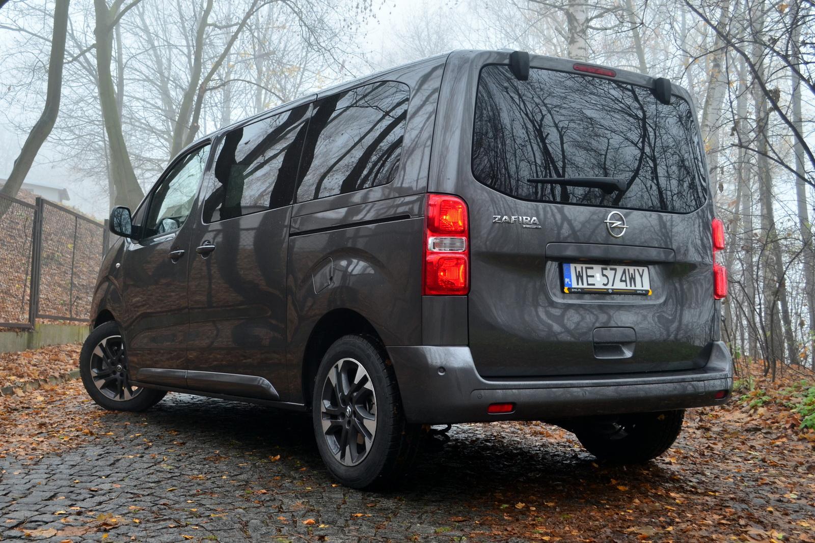 Nowa Zafira nie jest już kompaktowym vanem, lecz małym samochodem dostawczym. Zachowuje kształt niemal identyczny do pozostałych czworaczków (z PSA –Peugeot Traveller i Citroen SpaceTourer, a także z Toyoty – Proace). To dobrze, gdyż nie ma w jej nadwoziu żadnych zbędnych udziwnień, dzięki czemu można maksymalnie wykorzystywać. „pudełkowatą” przestrzeń we wnętrzu. Nową Zafirę od pozostałej wymienionej trójki odróżnić można wyłącznie, patrząc na przedni zderzak, a i to nie od razu, gdyż jest on bardzo podobnie wystylizowany jak ten w Peugeocie. Tył wszystkich czterech aut jest identyczny i różni się wyłącznie oznaczeniami danego producenta.