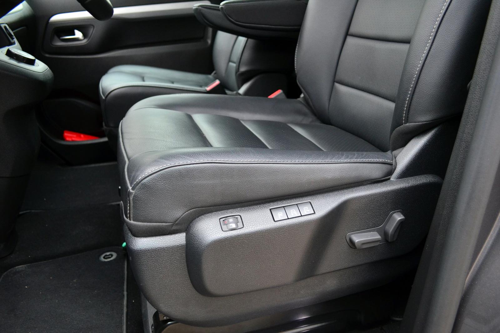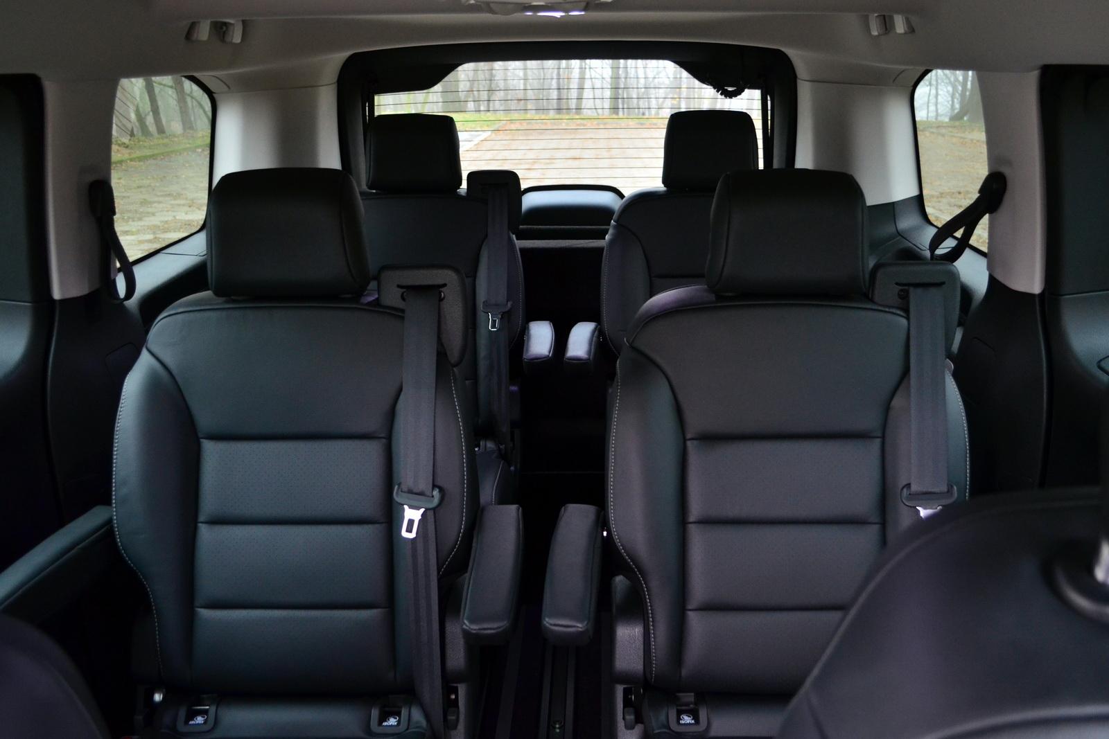 Pozycja za kierownicą jest typowa dla samochodów dostawczych. Siedzi się wysoko i dość kwadratowo, z kolanami zgiętymi pod niemal prostym kątem. Indywidualne siedzenia (bądź trzyosobowe kanapy) w części pasażerskiej można dowolnie przesuwać, a opcjonalnie w środkowym rzędzie obrócić o 180 stopni. W ten sposób w samochodzie uzyskamy coś na kształt mini sali konferencyjnej, ze stolikiem po środku. Pasy są zintegrowane z każdym z siedzeń, dzięki czemu podróżni zawsze są bezpieczni. O komfort pasażerów z tyłu dbają też osobne nawiewy i sterowanie temperaturą, umieszczone na panelu sufitowym. W nocy przełączniki i sama podsufitka są efektownie podświetlone, co daje poczucie podróży samolotem. Szyby w tylnej części nadwozia są przyciemniane, a dla jeszcze skuteczniejszej izolacji od świata zewnętrznego można je doposażyć w rolety.