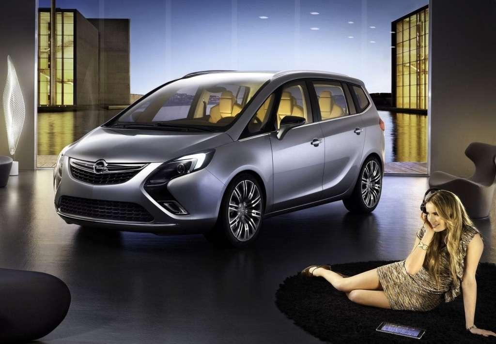 Po wprowadzeniu na rynek czwartej generacji Astry przyszedł czas na przymiarki do kolejnej generacji Zafiry – w końcu to kompaktowy van spokrewniony technologicznie z Astrą. Kompaktowe nadwozie ma styl i wiele elementów kojarzących się z czwartą generacją Astry i aerodynamikę wzorowaną na superszybkich pociągach. Charakter przedniej części nadwozia w dużym stopniu warunkuje nietypowe połączenie reflektorów i umieszczonym niżej halogenów w jednym, przypominającym kształtem bumerang czy grot strzały wyżłobieniu karoserii i zderzaka. Taki kształt to nowy znak rozpoznawczy Opla. Mają go światła Astry IV i Insigni. Znajdziemy go także w przednich i tylnych lampach prototypowej Zafiry. Styliści przyznają się jednak także do wykorzystania przetłoczeń boków karoserii zapożyczonych z Astry Sports Tourer. Co do wnętrza, to trudno się zdecydować, czy bardziej przypomina kabinę superluksusowego samolotu pasażerskiego czy nowoczesną kawalerkę. Masywne, miękkie fotele są pokryte karmelową skórą, podobnie jak górna część deski rozdzielczej i wstawki w tapicerkę drzwi. Pozostałe elementy wystroju wnętrza mają kolor kakaowa. Takie zestawienie tworzy ciepłą, niemal domową atmosferę.