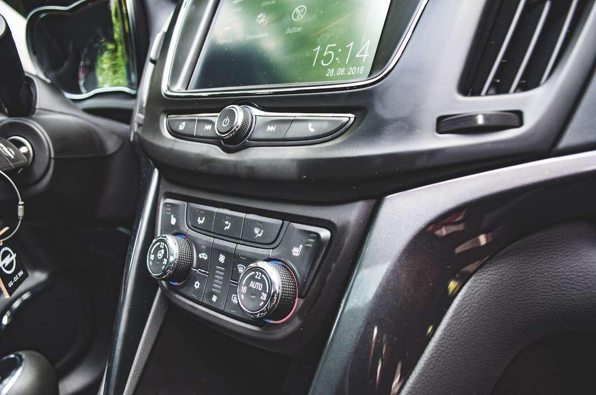 Opel lubił wcześniej umieszczać na konsoli centralnej tyle przycisków, ile było tylko możliwe, ale stopniowo od tego konceptu odchodzi. Tak też i w Zafirze system InteliLink R4.0 obsługujemy już głównie za pomocą dotyku, a przyciski dają nam tylko szybki dostęp do głośności, zmiany utworu, powrotu do ekranu głównego i przejścia do książki telefonicznej. Poniżej znajdziemy nadal sporo przycisków, które służą do obsługi klimatyzacji, ale to akurat dobrze - wbudowywanie tego w funkcje panelu dotykowego nie jest najlepszym pomysłem.