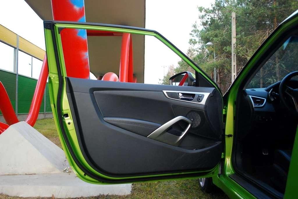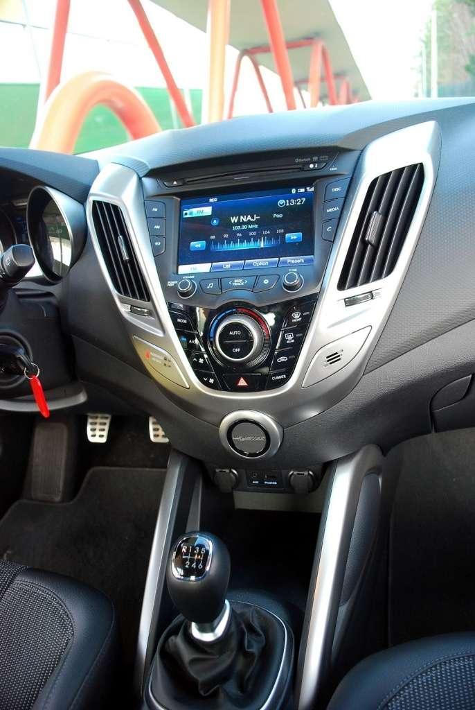Do tego, że mamy do czynienia z autem nietuzinkowym, nie muszę chyba nikogo przekonywać. Już sam kształt nadwozia, które zostało wyraźnie zaprojektowane na rynki motoryzacyjne, gdzie panuje ruch prawostronny, cieszy oko. Nie trzeba tu, jak na przykład w przypadku Mercedesa CLS, dopatrywać się kształtów typowego coupe. Również jeśli chodzi o wymiary, to nie mają one wiele wspólnego z CLS. 4220mm długości i 2650mm rozstawu osi, przy wysokości 1399mm – tyle tylko dostaliśmy od Hyundaia. Samochód i z prawej, i z lewej strony wygląda bardzo dynamicznie – na tyle, że każdy, z kim rozmawiałem o Asymetrycznym, spodziewał się, że pod jego maską drzemie minimum 250 koni mechanicznych. Wyraźnie poszerzone błotniki wypełnione osiemnastocalowymi kołami, diodowe światła do jazdy dziennej, boczne przetłoczenia, podwójny wydech – tak, to auto może się podobać. Przez parę dni miałem zabawę. Podchodząc do samochodu stojącego na parkingu od odpowiedniej strony, nastrajałem się na jazdę coupe lub hatchbackiem. Wiem, wiem to mało wyszukana zabawa, ale daje posiadaczowi Velostera poczucie posiadania dwóch różnych modeli. Ego idzie w górę.